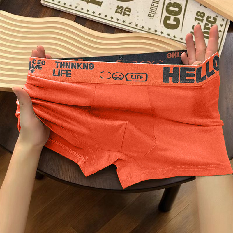 Ropa interior masculina, letras juveniles, cintura media suelta y cómoda, transpirable y sin costuras, pantalones cortos de cuatro esquinas para estudiantes al por mayor