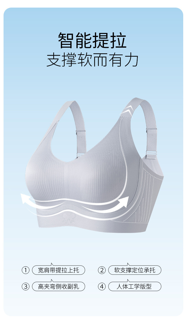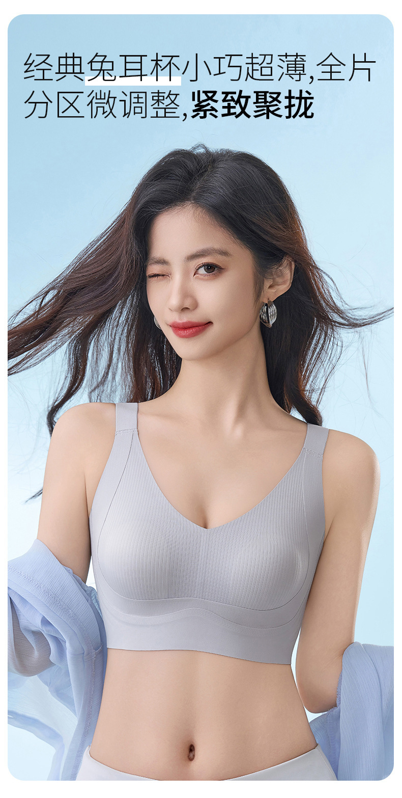 Orejas de conejo de tamaño grande levantan ropa interior de soporte suave damas grandes pechos pequeños sin anillo de acero sujetador se reúnen sujetadores anti-caída