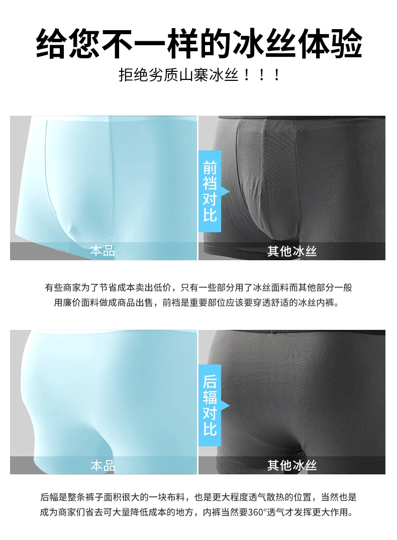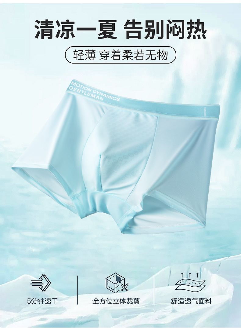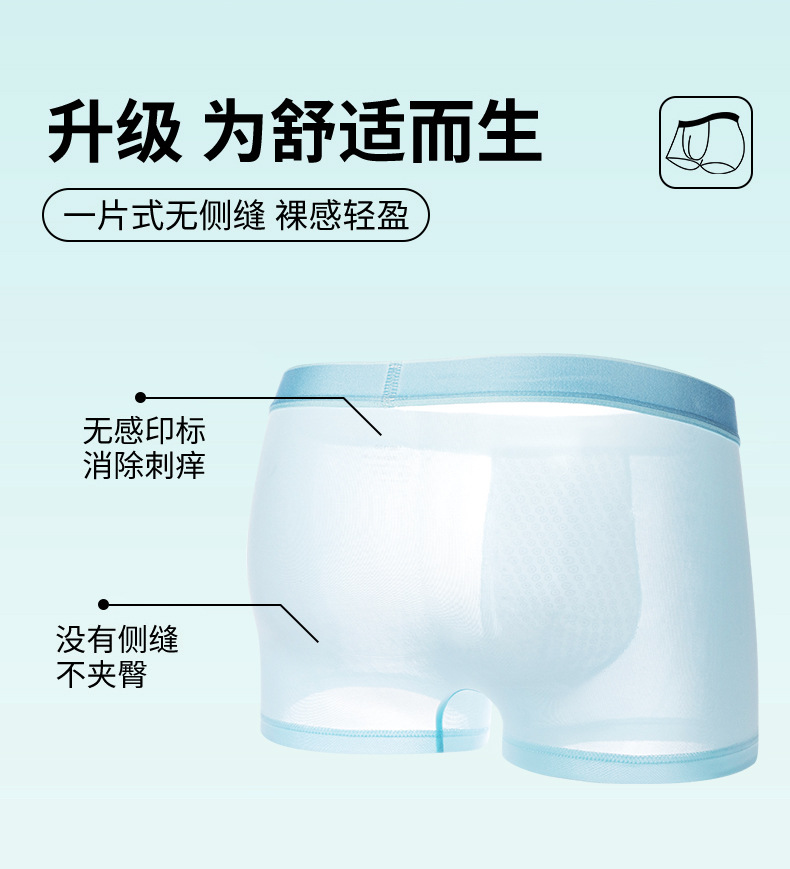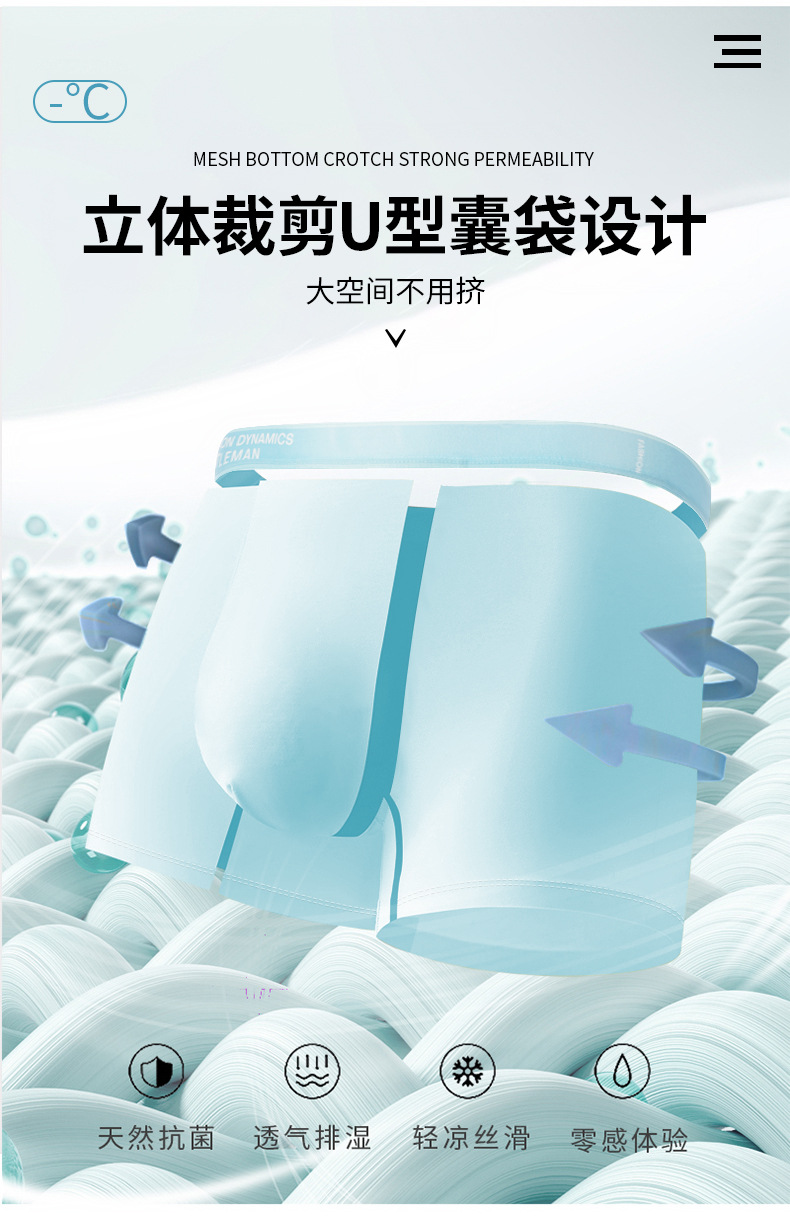 Nuevas calzoncillos de hombre delgados helados antibacterianos calzoncillos de entrepierna, pantalones cortos transpirables de verano para hombres