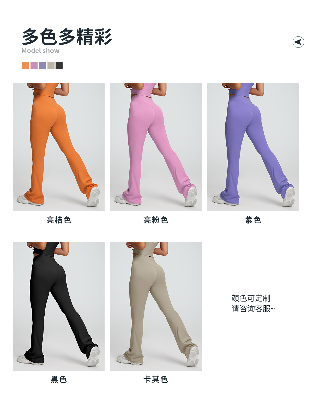 | Colores | Pantalón acampanado naranja brillante,Pantalón acampanado rosa brillante,Pantalones acampanados caqui,Pantalones acampanados morados,Pantalón negro acampanado |