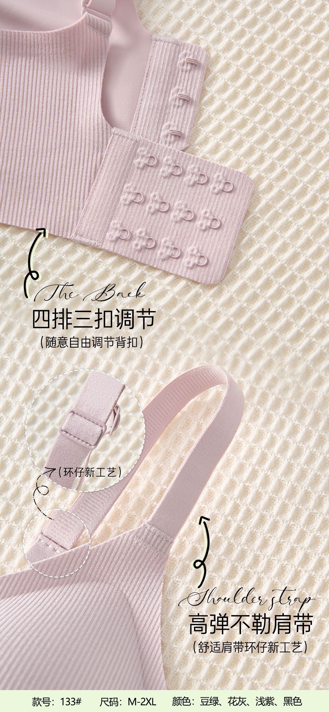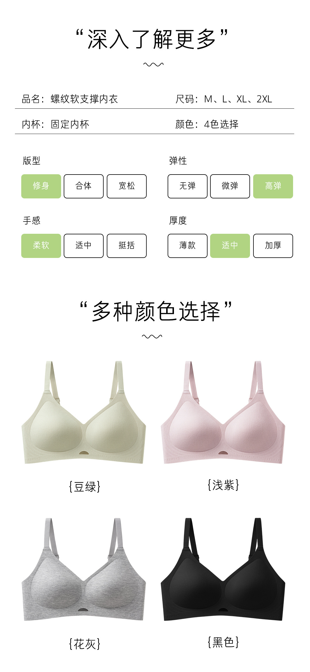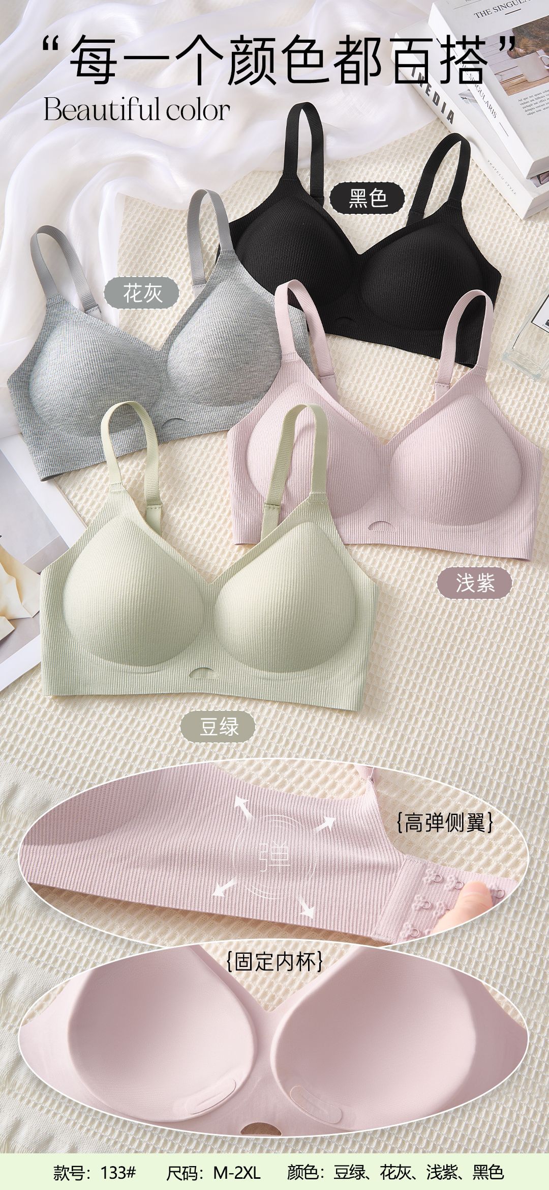 | Colores | Verde frijol,Morado claro,Gris de flores,Negro |