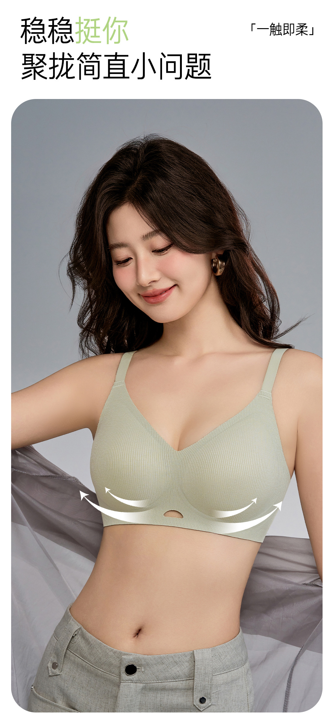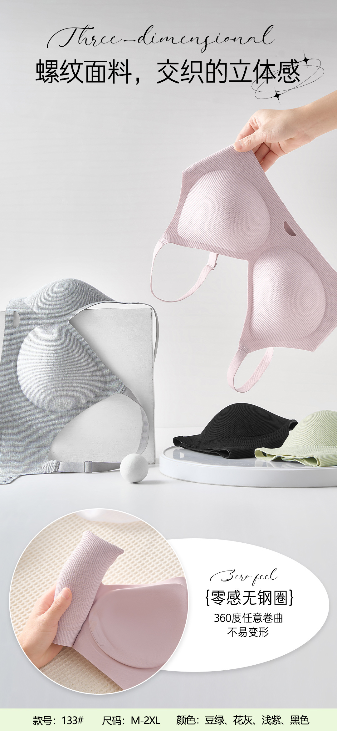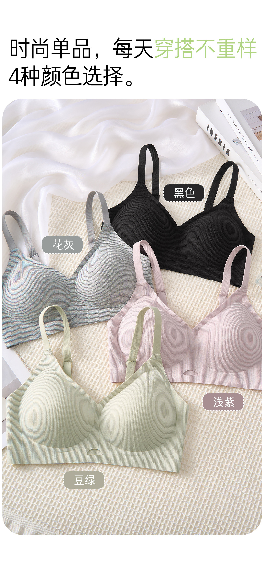 Ropa interior sin sentido con soporte suave roscado, sujetador sin anillo de acero recogido de pecho pequeño para mujer, sujetador de copa fija con soporte superior anti-caída