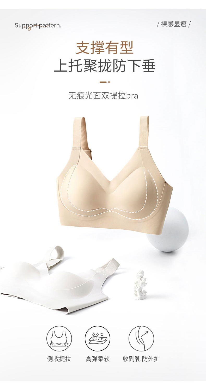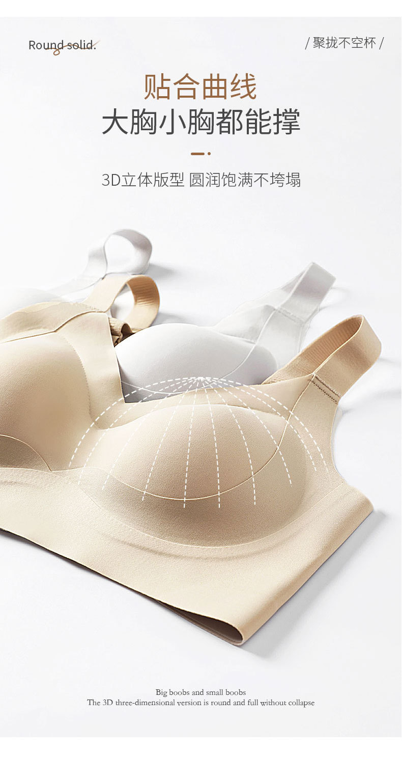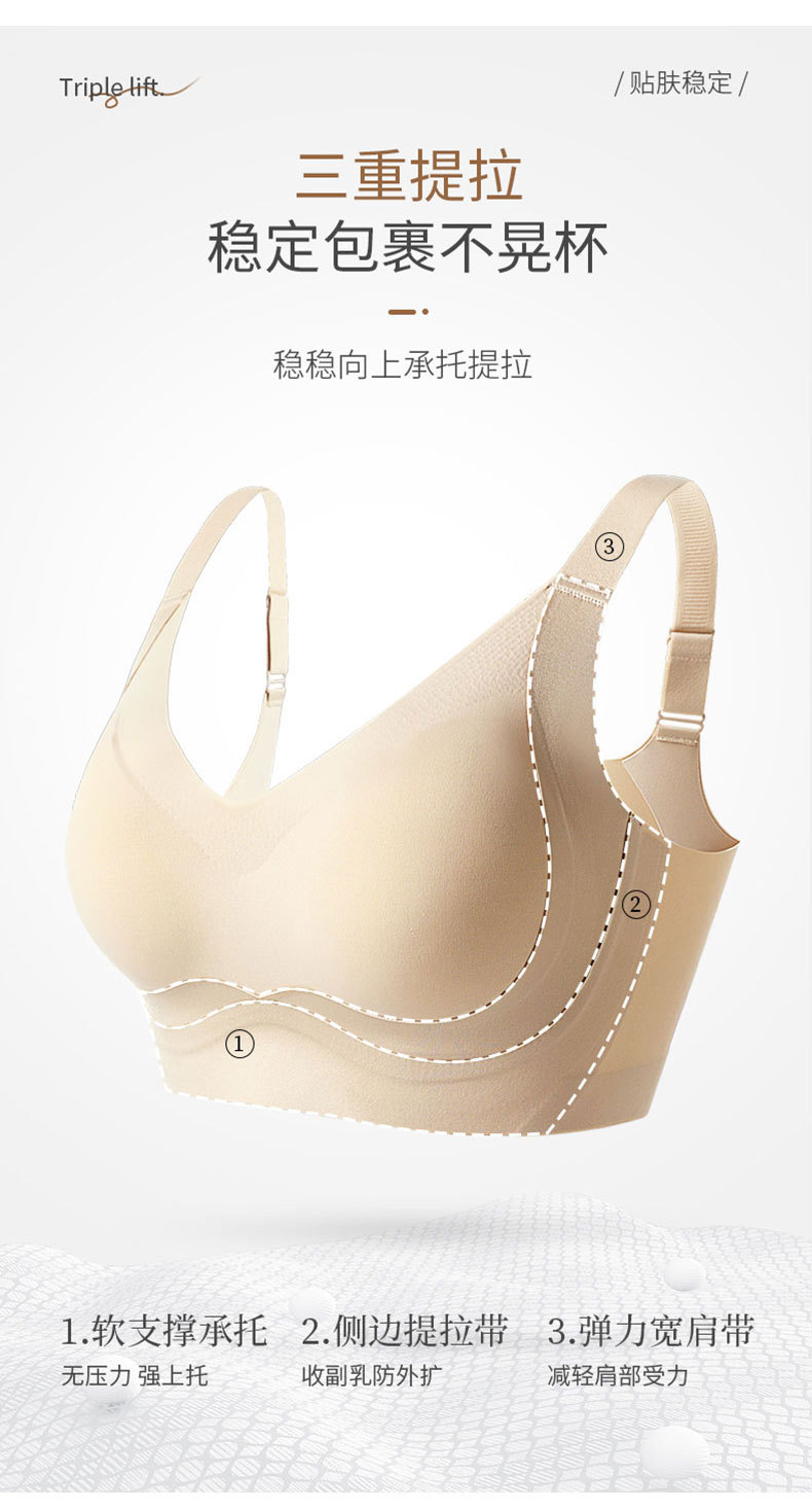 Gran tamaño de ropa interior de elevación para damas gran pecho pequeño sin marca sin anillo de acero sujetador cerrado anti-caída soporte delgado sujetador
