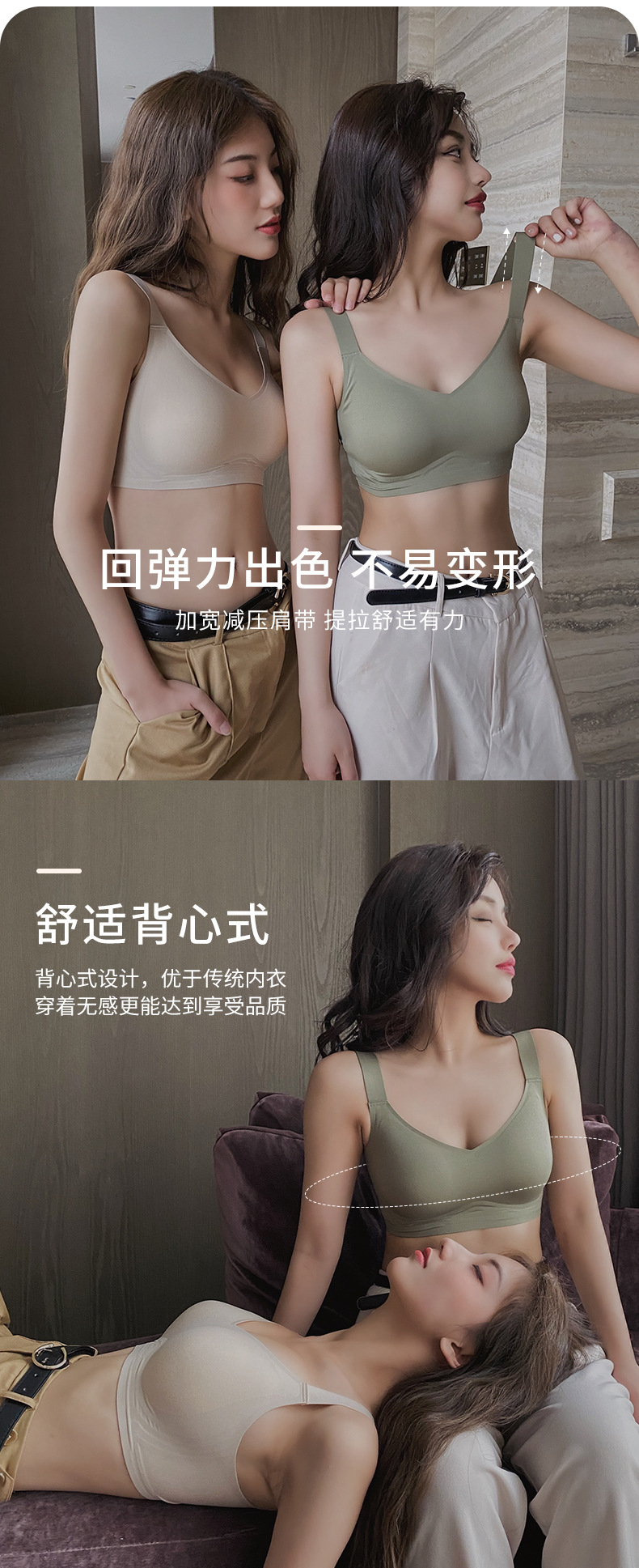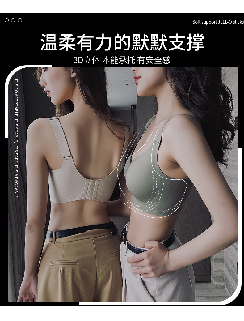 Gran cinturón de hombro de soporte suave de jalea ropa interior damas sin marcas sin anillo de acero sujetador recopilado anti-caída sujetador delgado