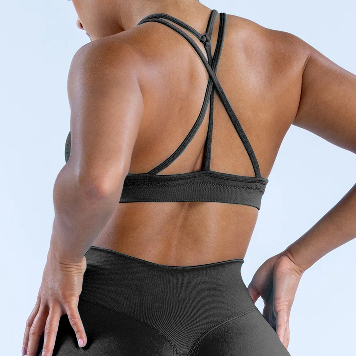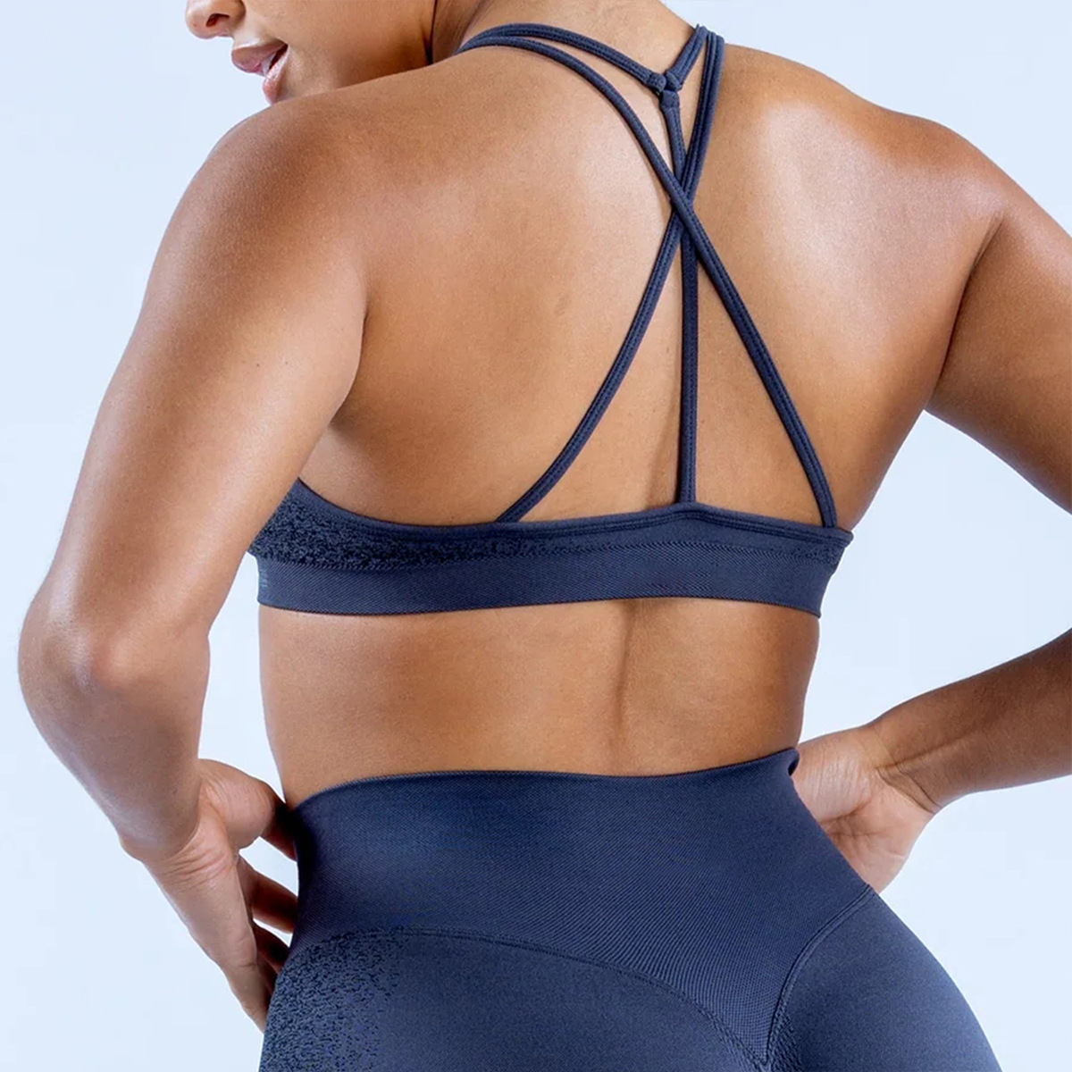 Sujetador de yoga ajustado y sin costuras transfronterizo de AliExpress Sujetador de fitness de uso exterior jacquard de alta elasticidad Sujetador deportivo