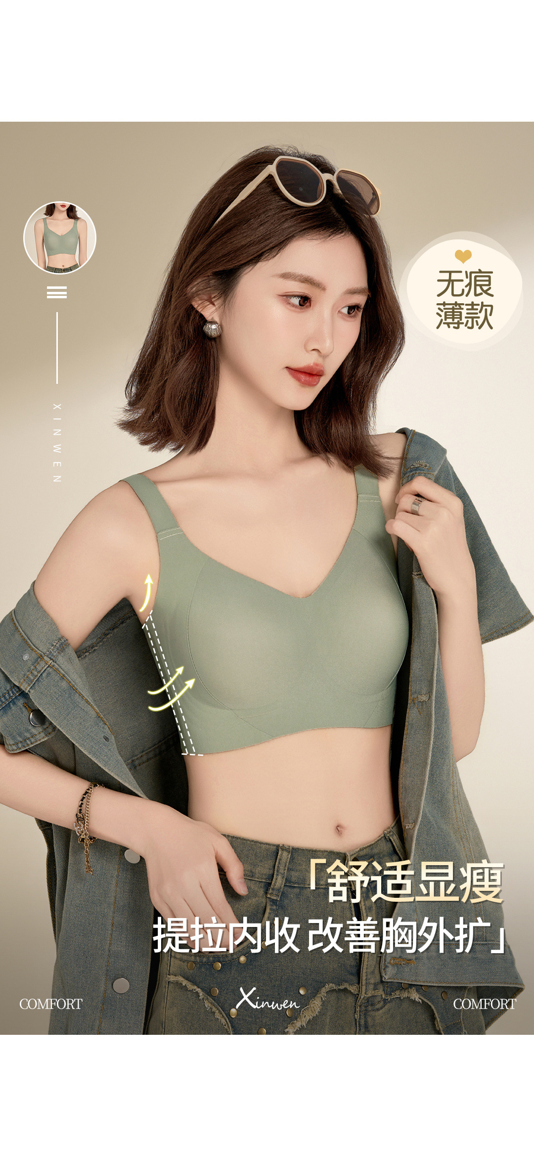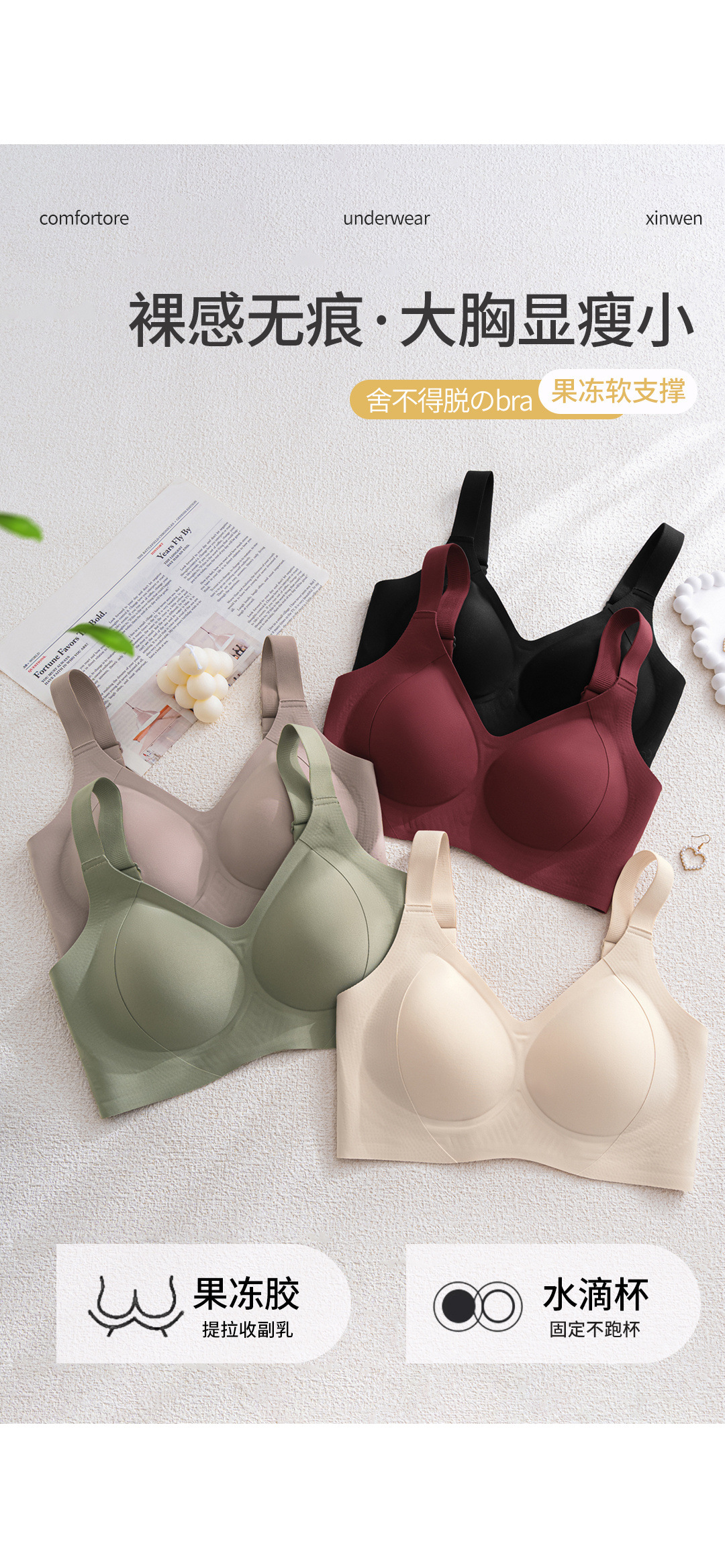Gran tamaño de ropa interior de soporte suave para damas, bra pequeño sin marcas, bra de soporte superior de pecho contra la caída.