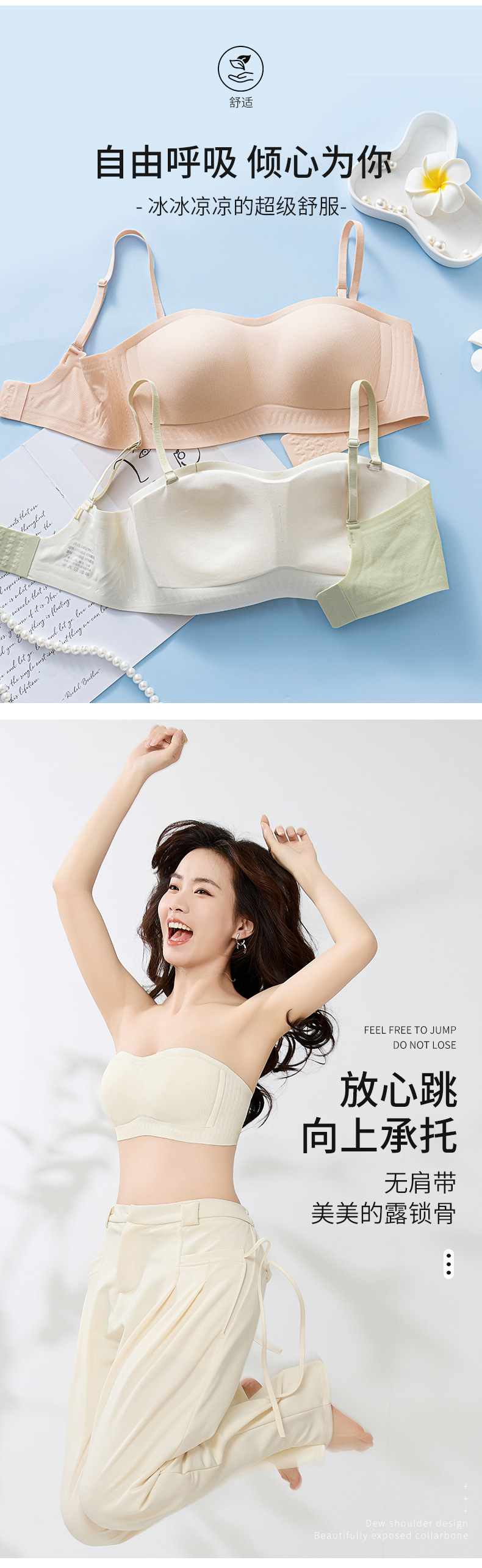 Verano sin cinturón de hombro ropa interior de soporte suave damas sin marcas sin anillo de acero sujetador de hombro antideslizante sujetador