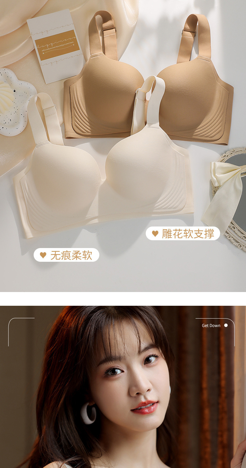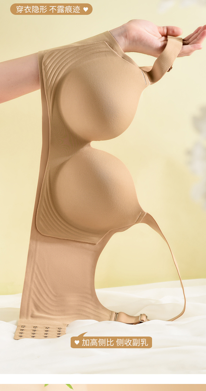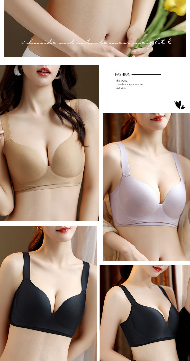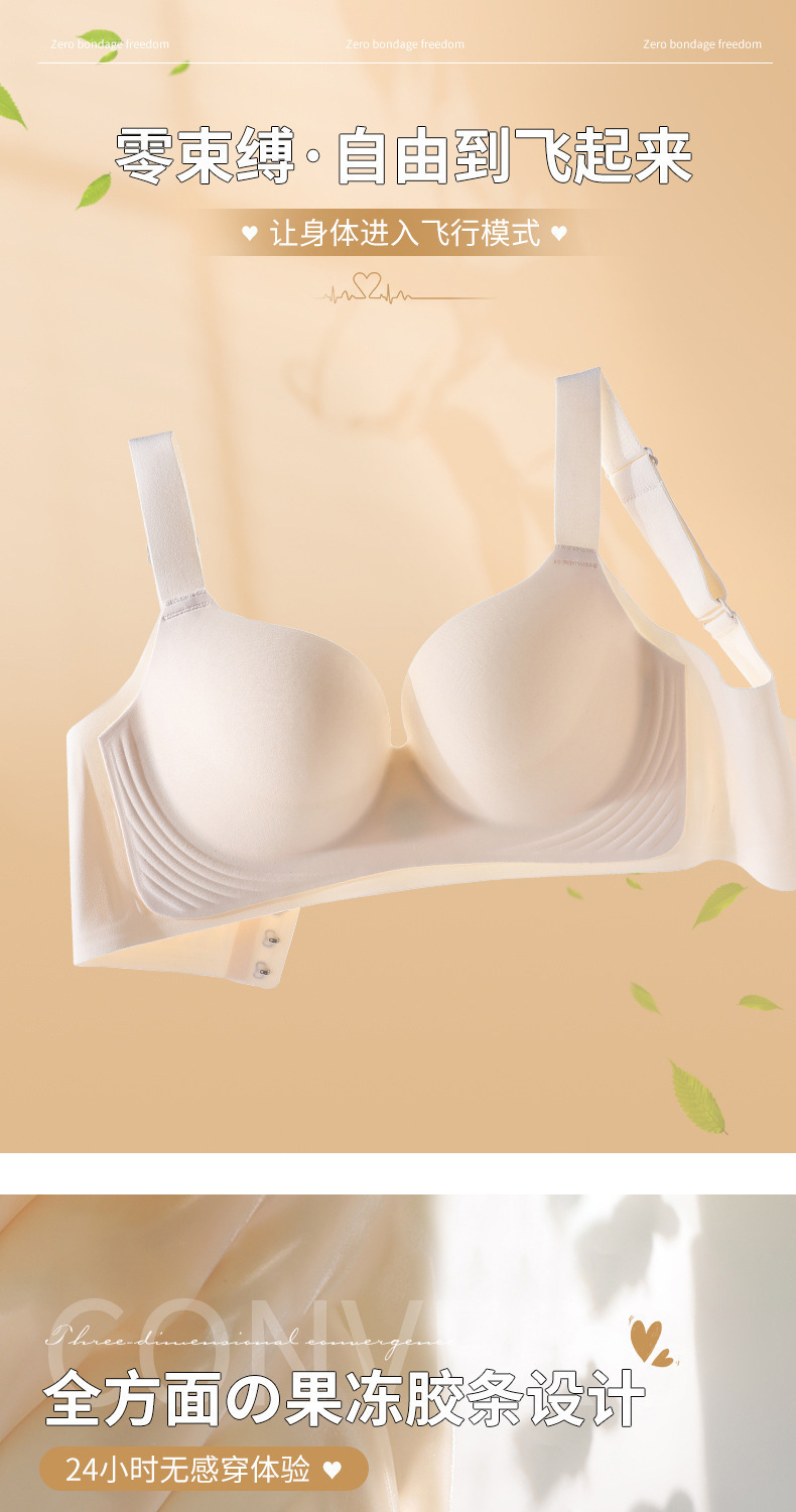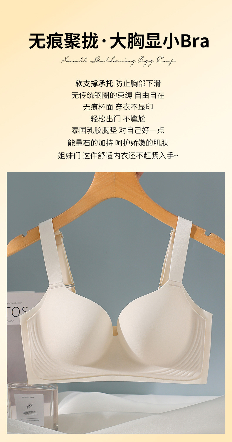 Lingería de látex sin marcas de tamaño grande para damas, un pequeño bra sin anillo de acero que se reúne y se apoya en un bra delgado.