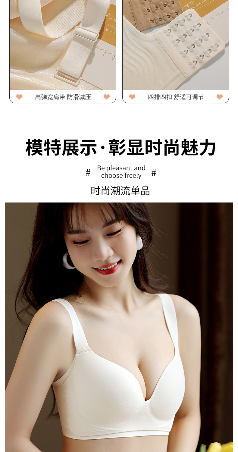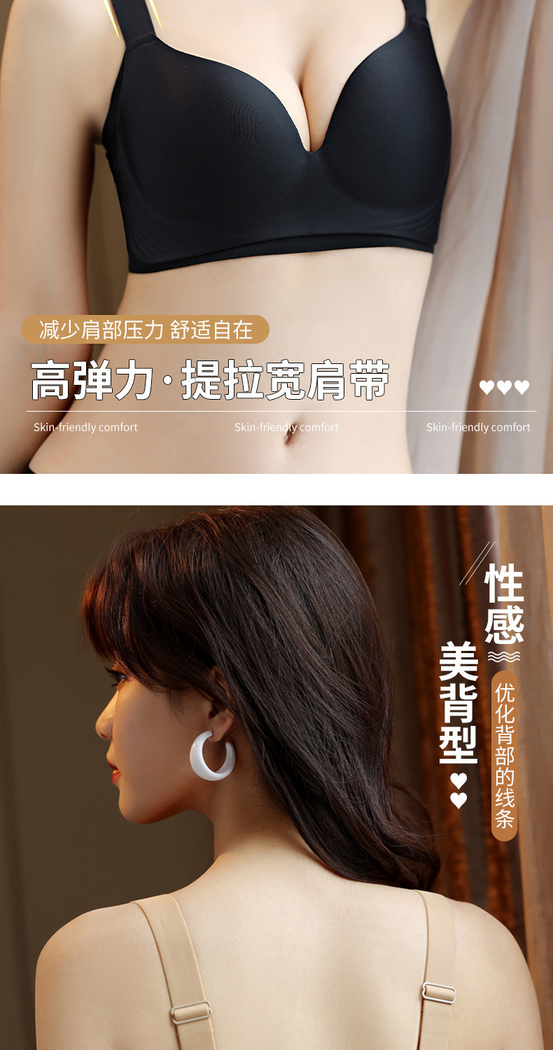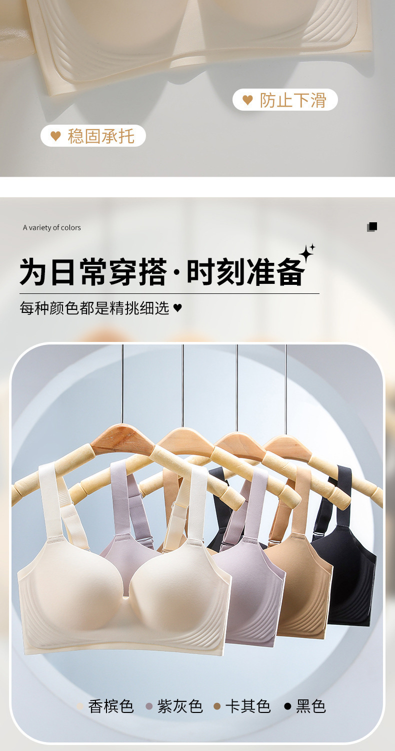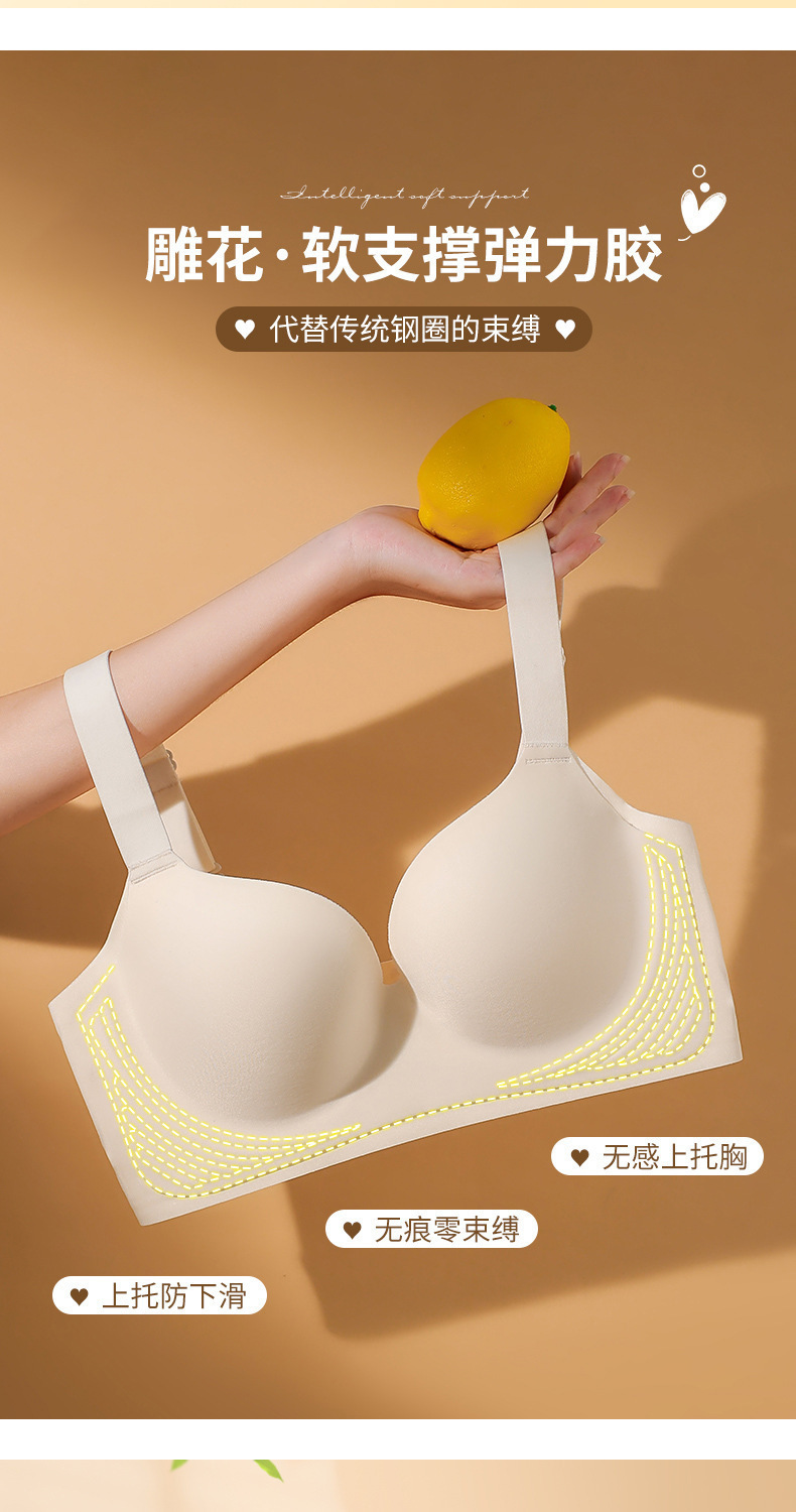 Lingería de látex sin marcas de tamaño grande para damas, un pequeño bra sin anillo de acero que se reúne y se apoya en un bra delgado.