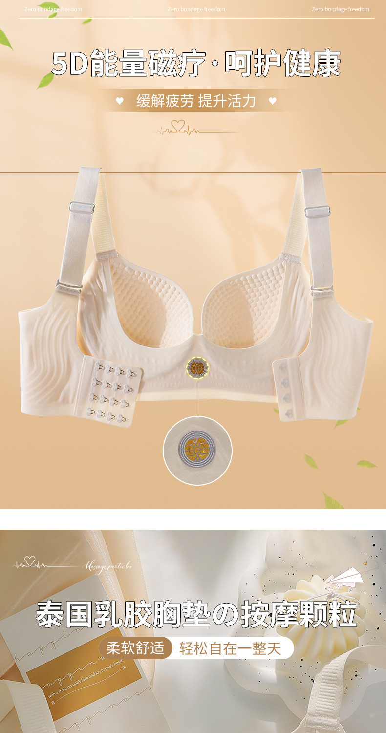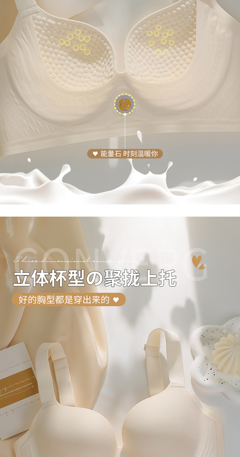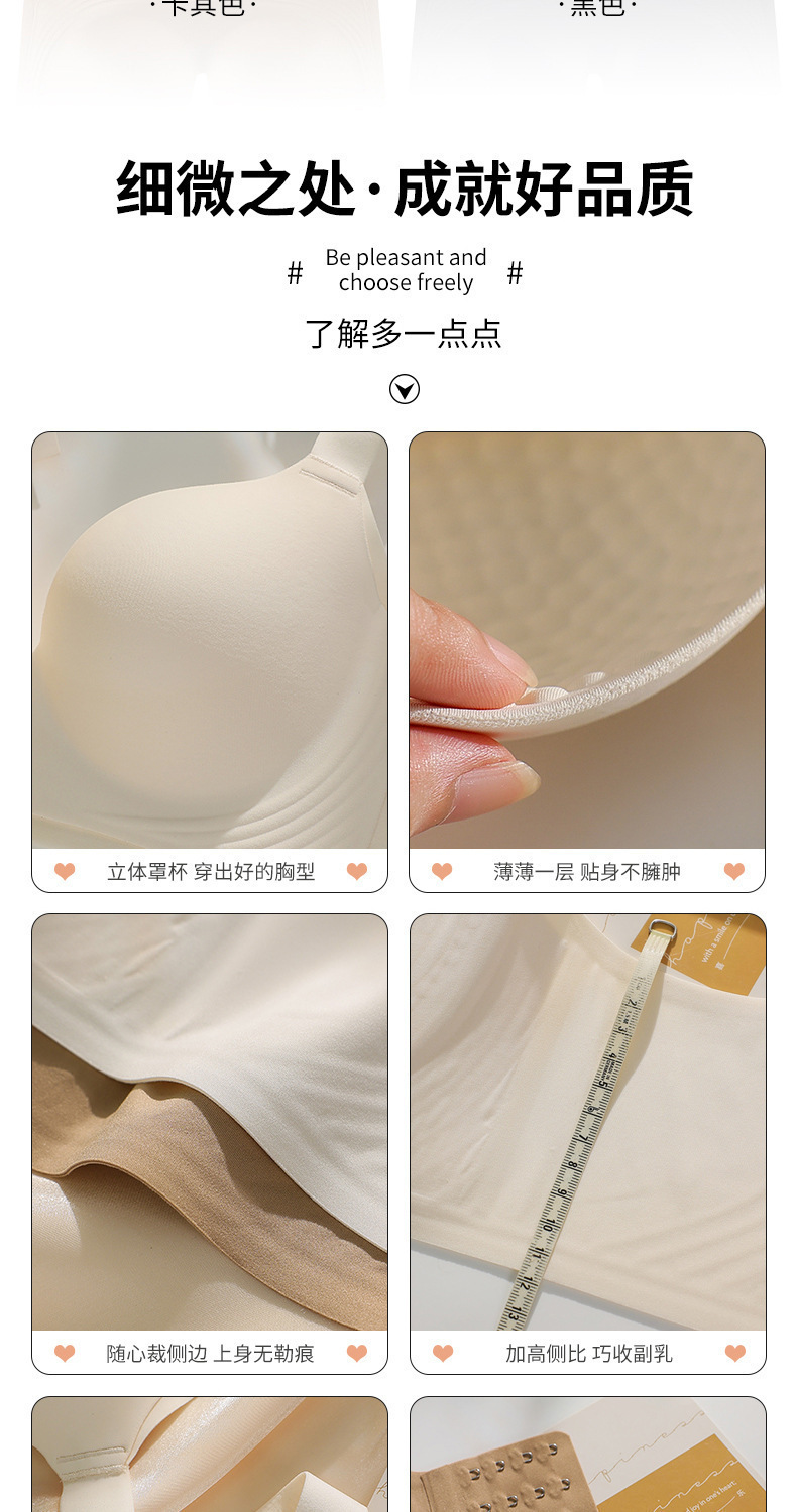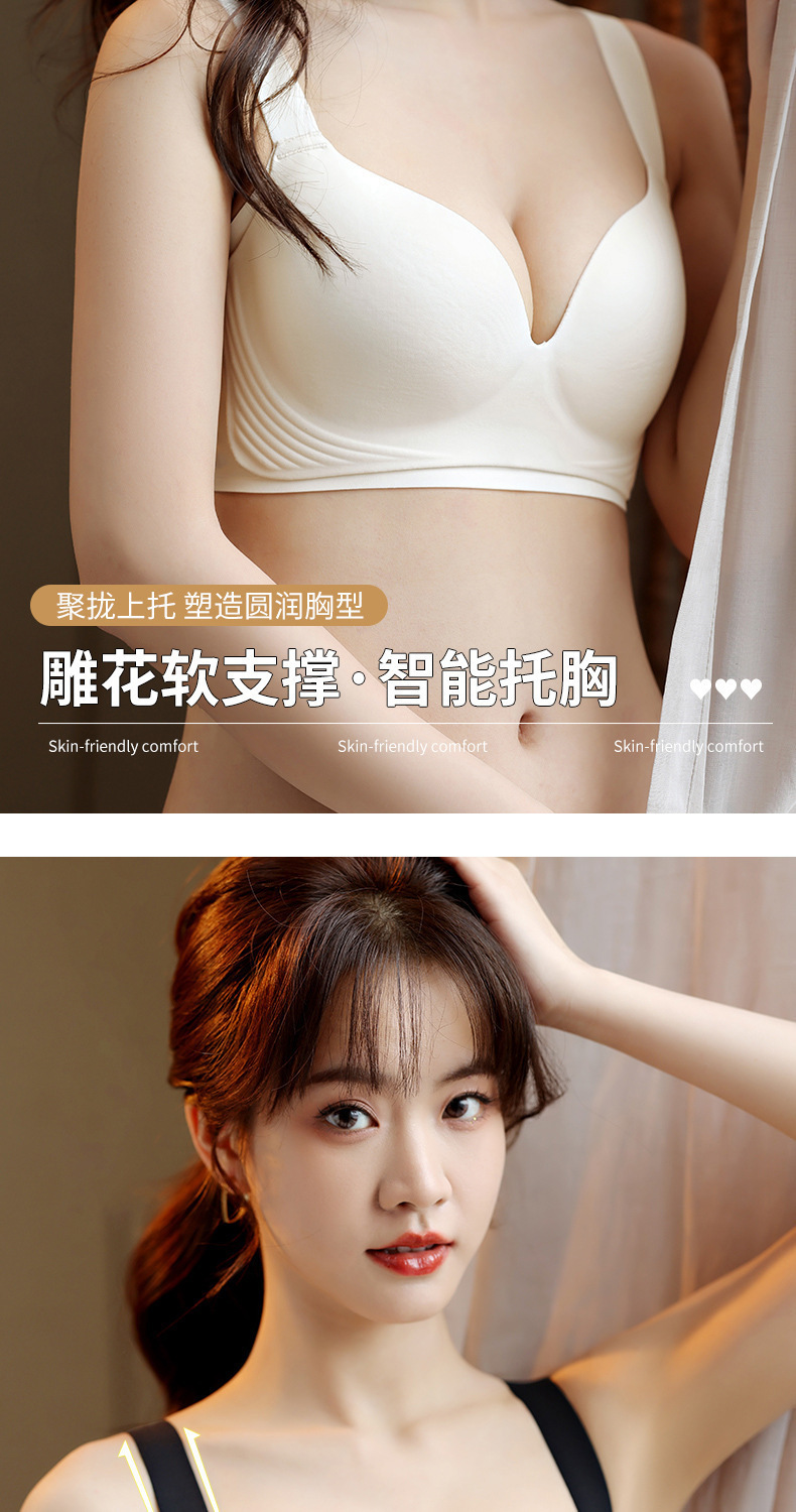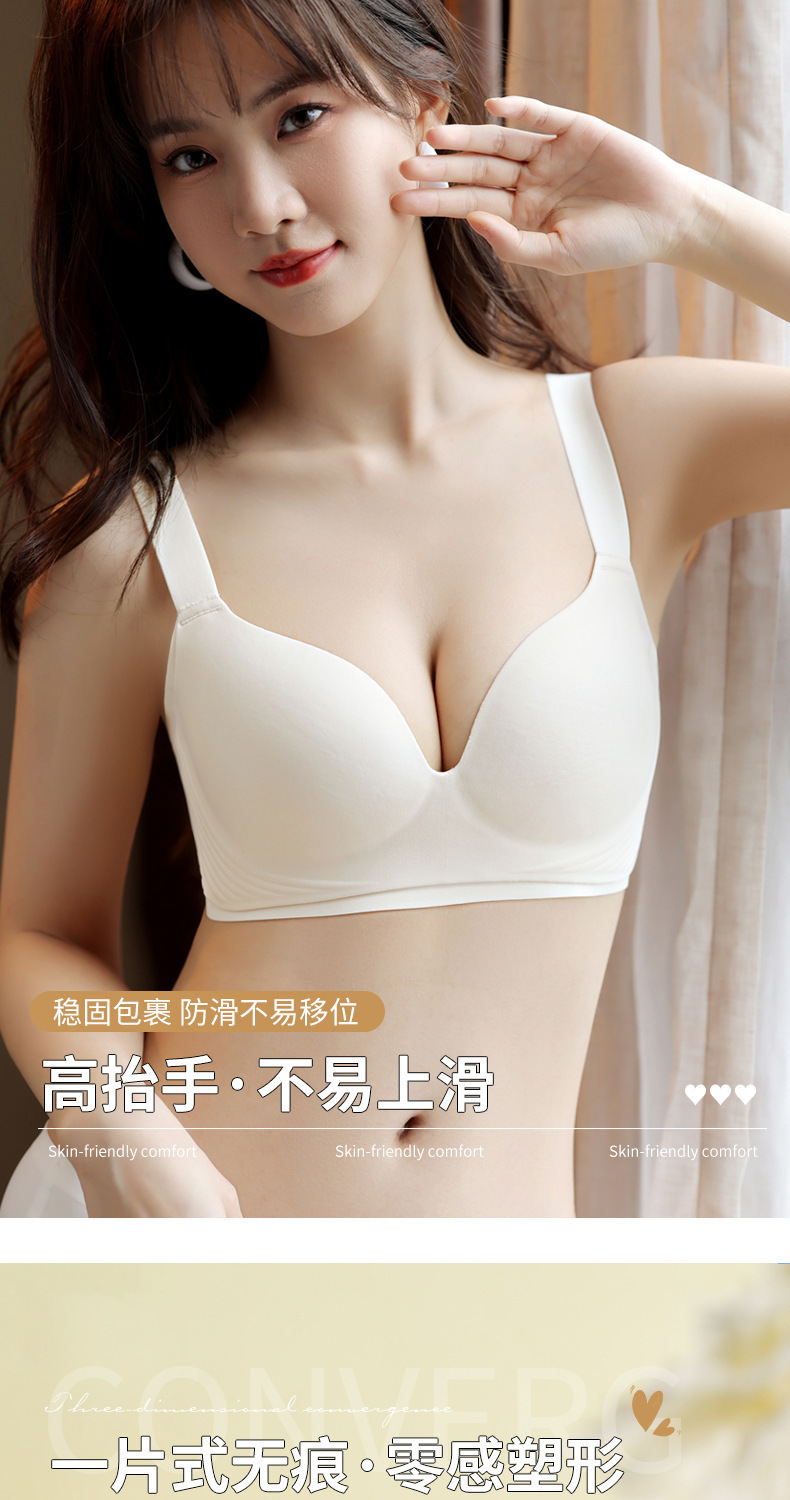 Lingería de látex sin marcas de tamaño grande para damas, un pequeño bra sin anillo de acero que se reúne y se apoya en un bra delgado.
