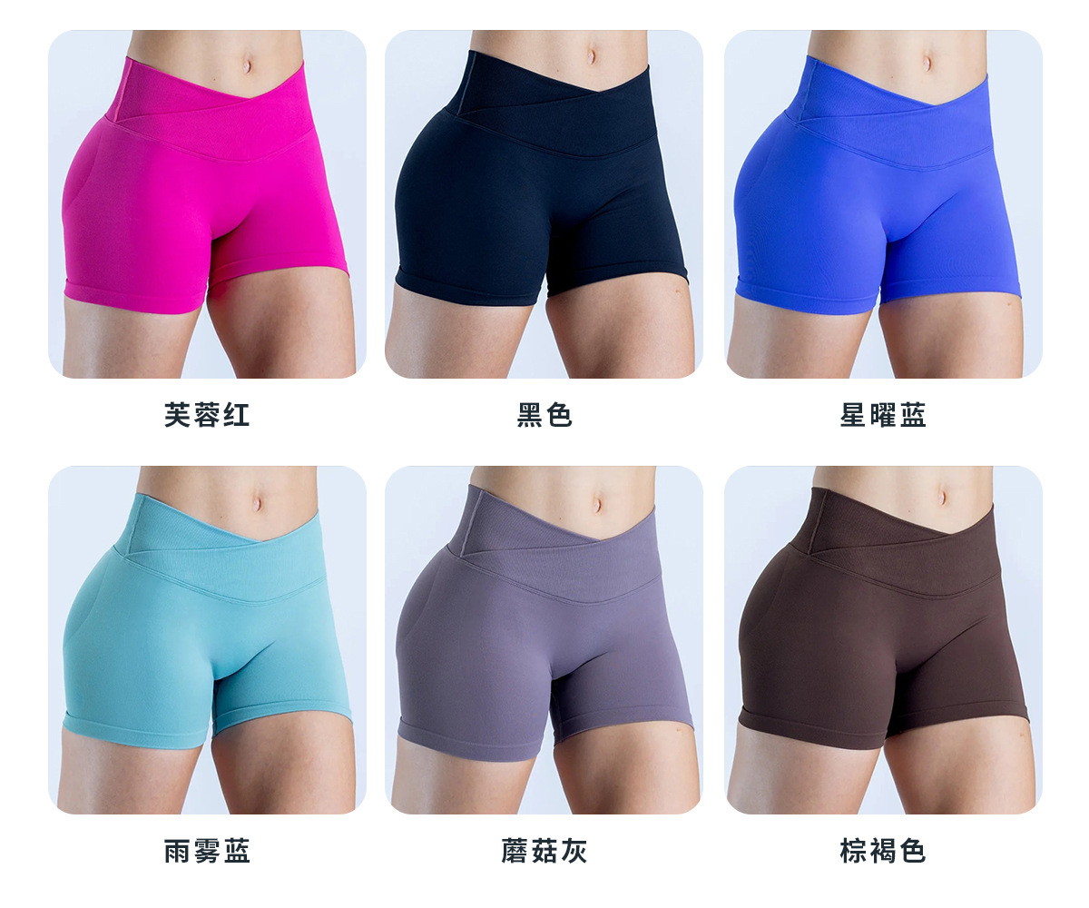 Transfronterizos Amazon pantalones cortos sin cristales matados, pantalones deportivos de cintura cruzada, pantalones de gimnasio de cintura baja