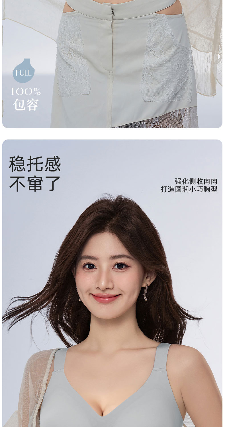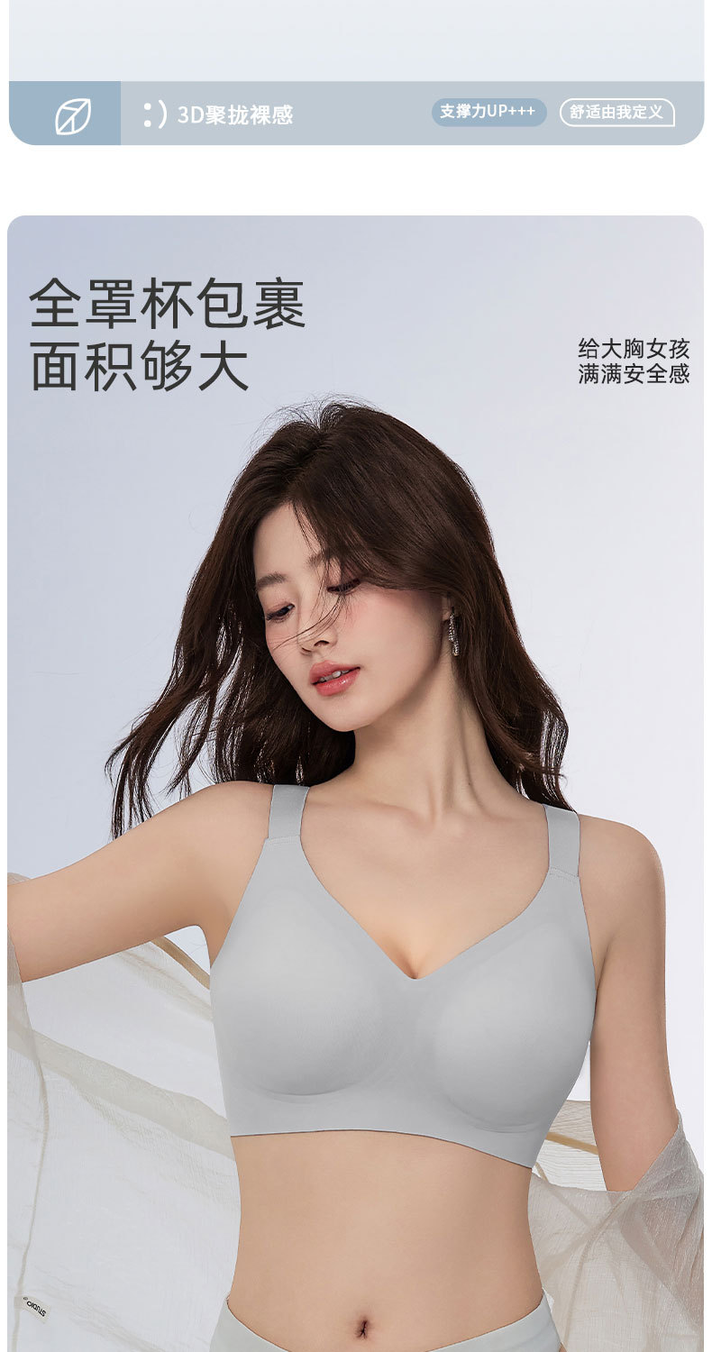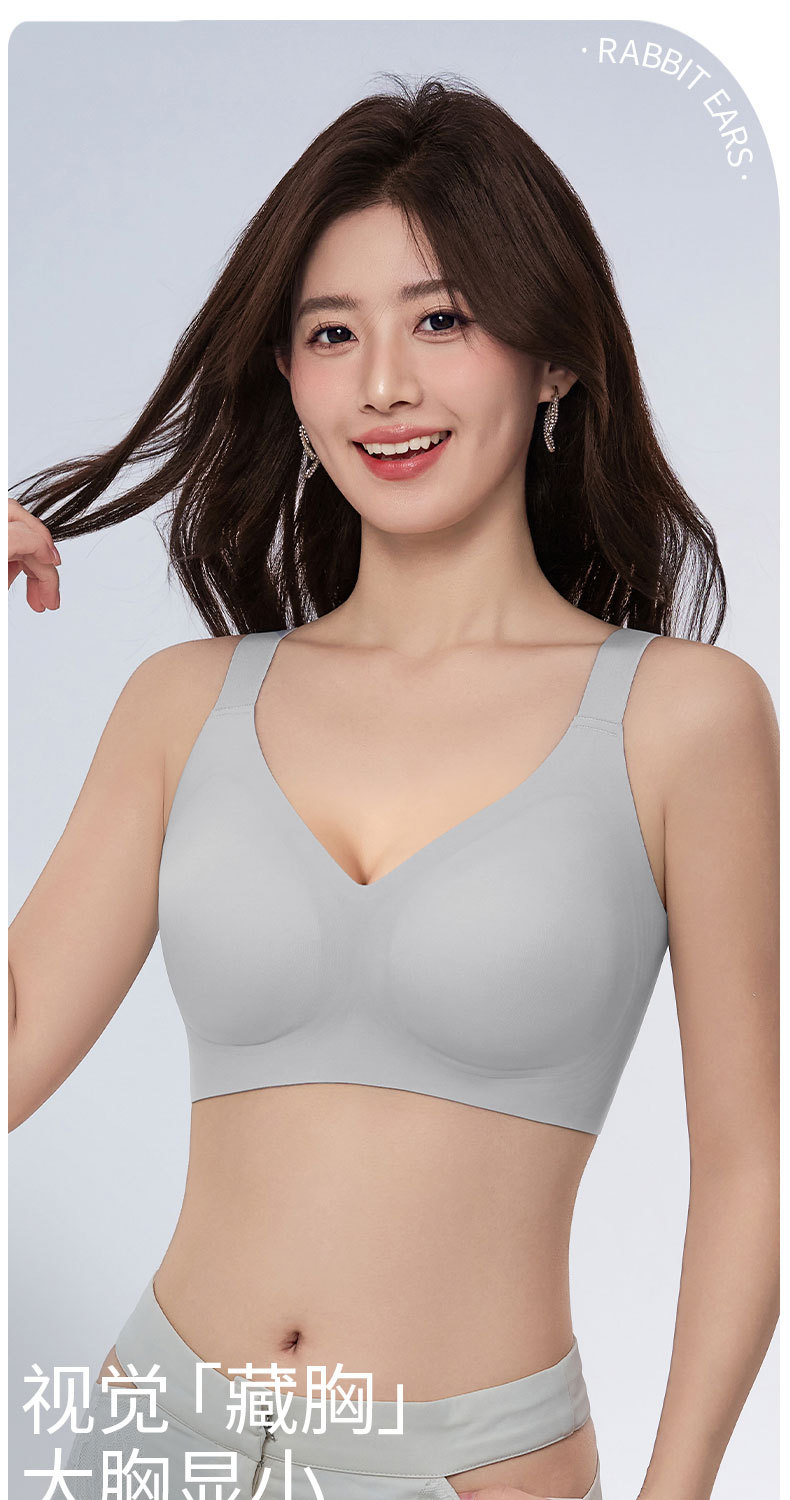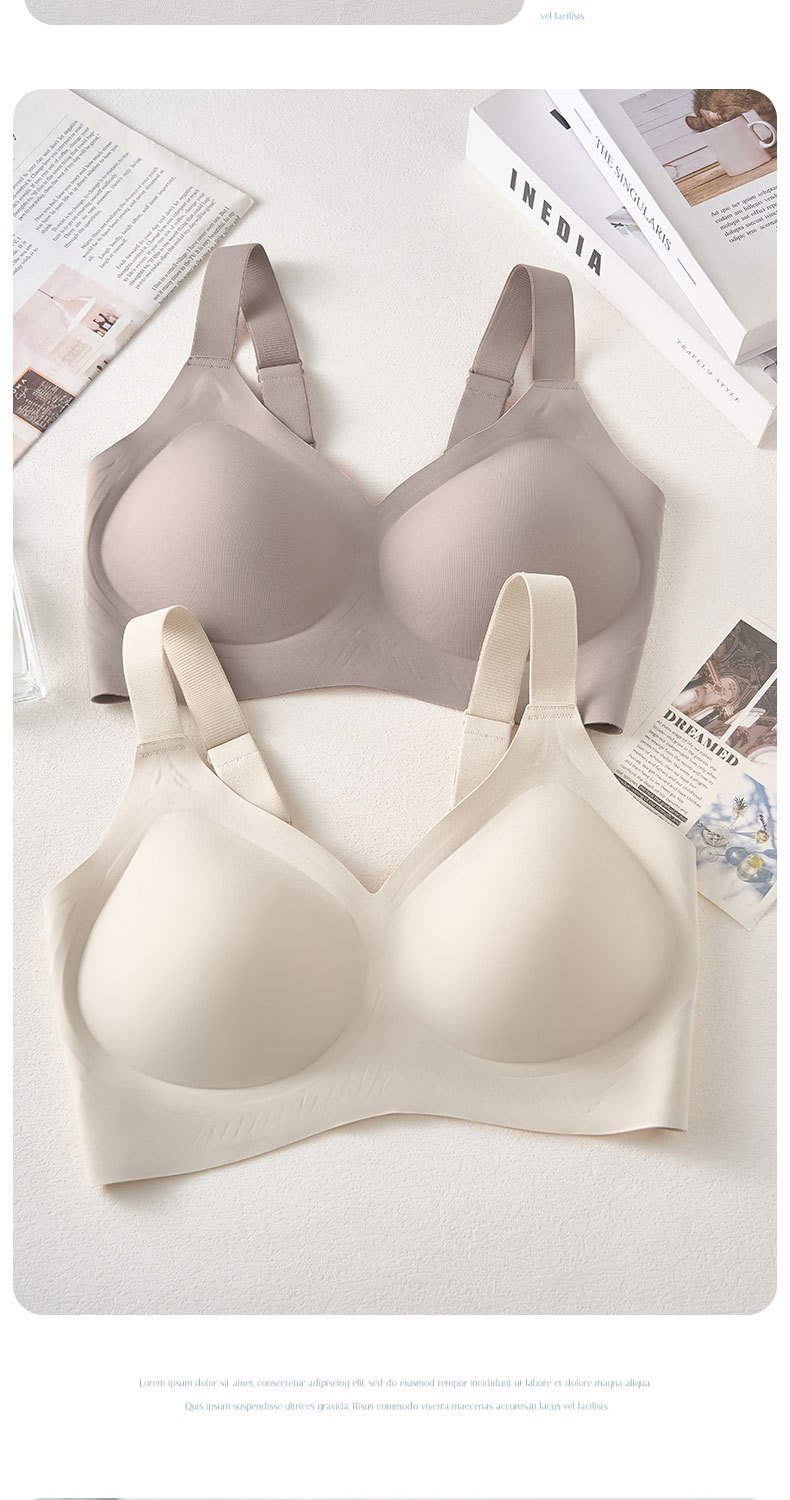 Gran tamaño suave de soporte de jalea ropa interior delgada pequeño sin marcas sujetador para mujeres que se reúnen contra los senos colgantes anti-caída sujetador de soporte superior