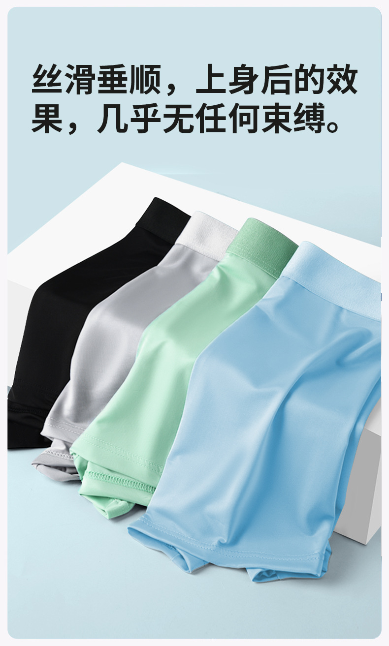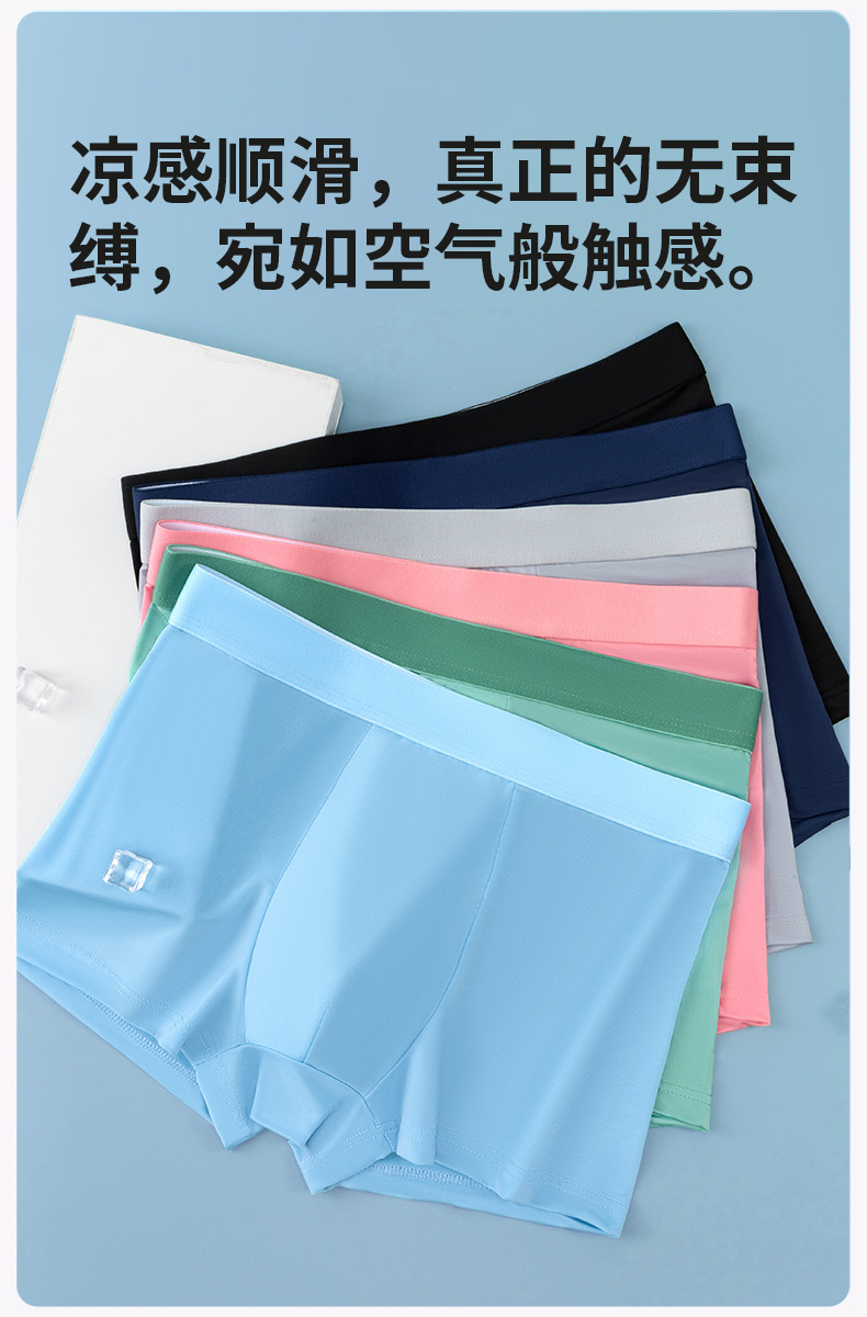 Calzoncillos de seda de hielo de verano calzoncillos boxer de seda de hielo para hombres cabeza entrepierna antibacteriana color sólido cuatro esquinas pantalones cortos para niños nuevos para hombres