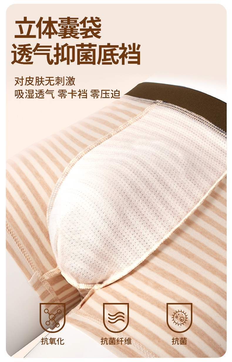Pantalones de algodón de color de moda a rayas para la piel, entrepierna transpirable, pantalones de algodón adolescente de cuatro esquinas.