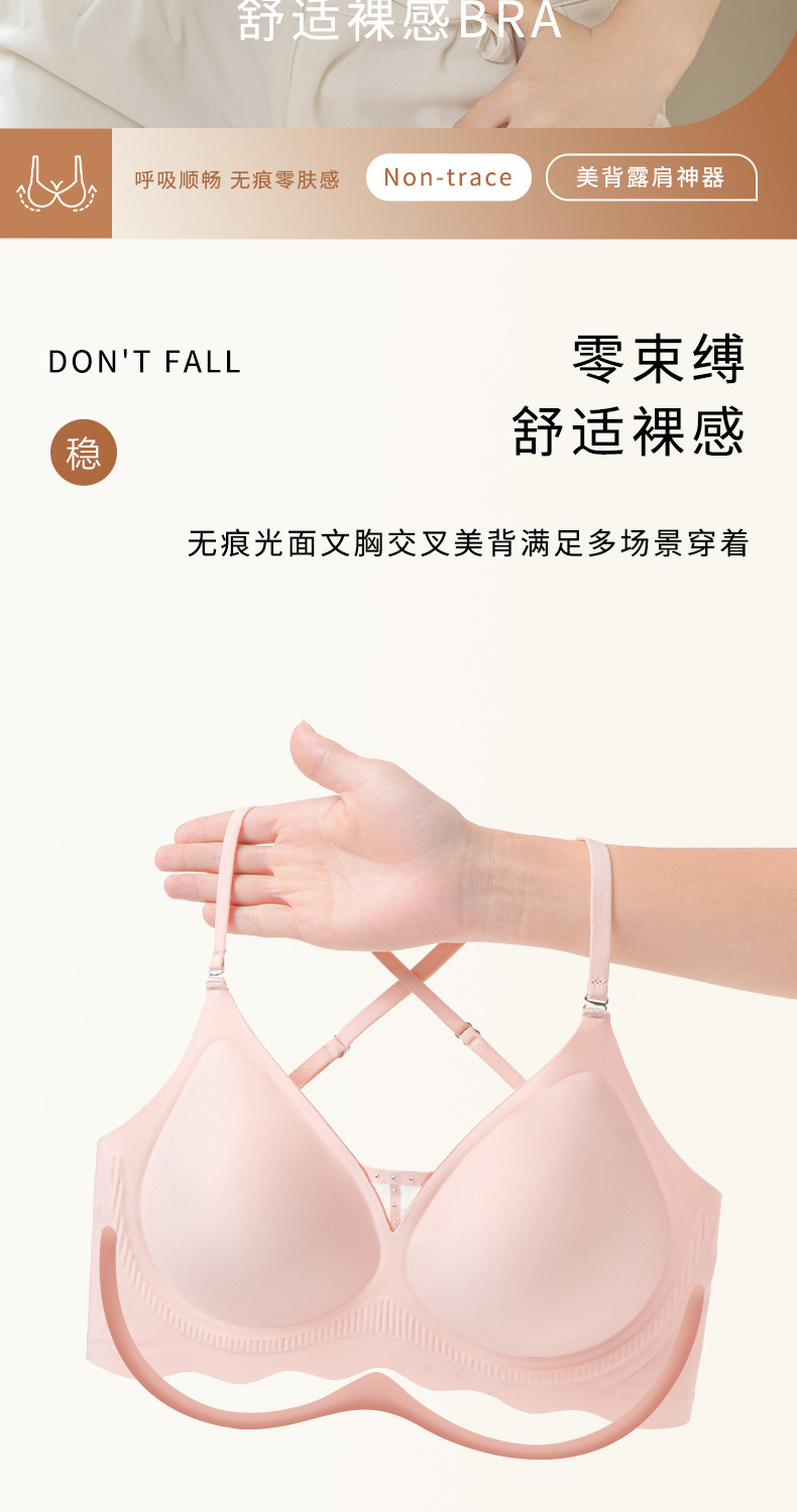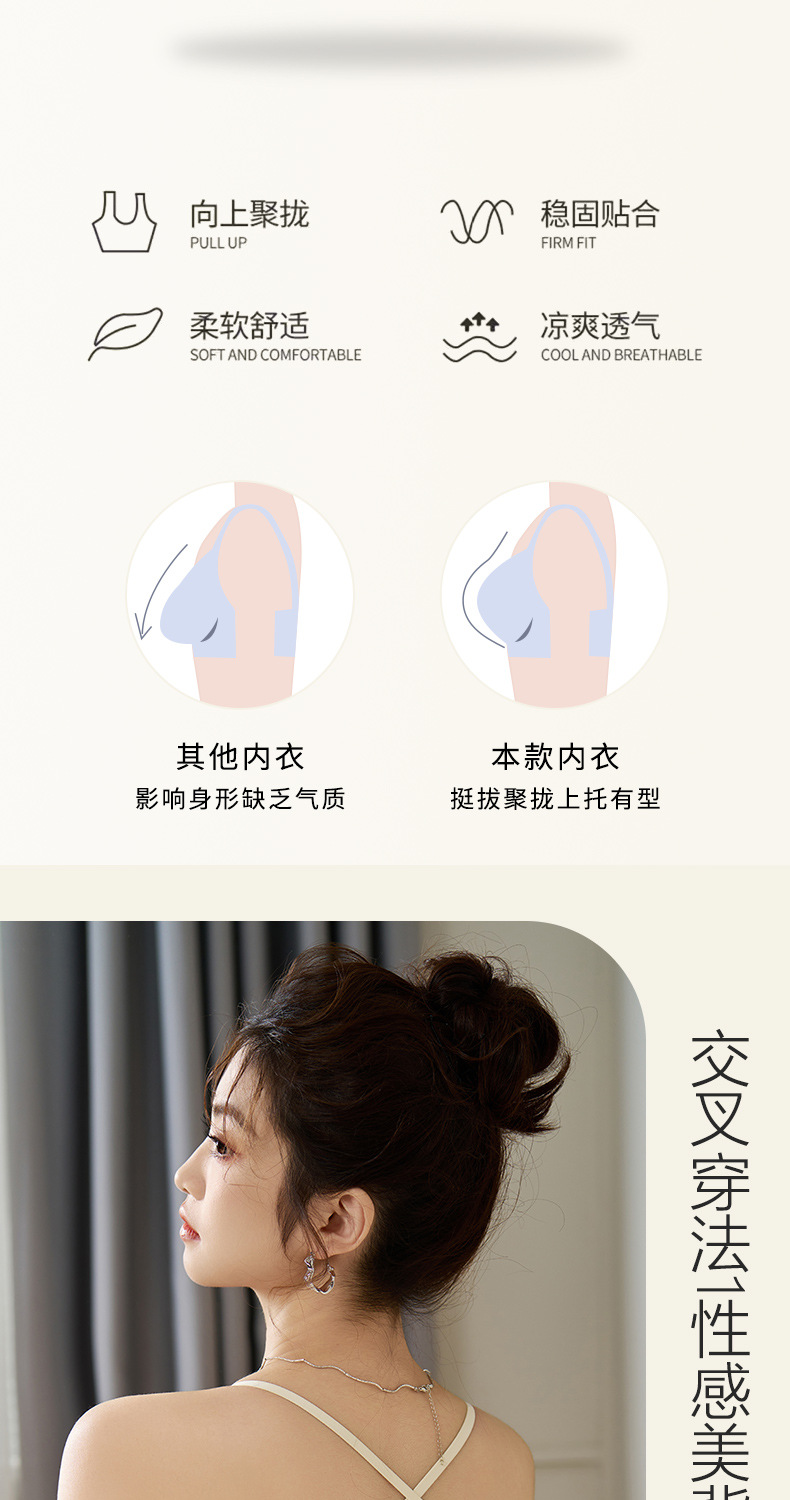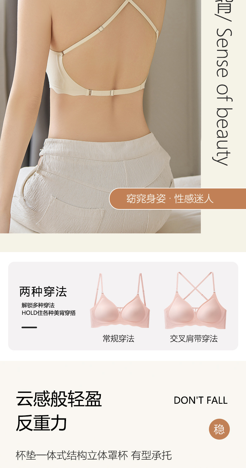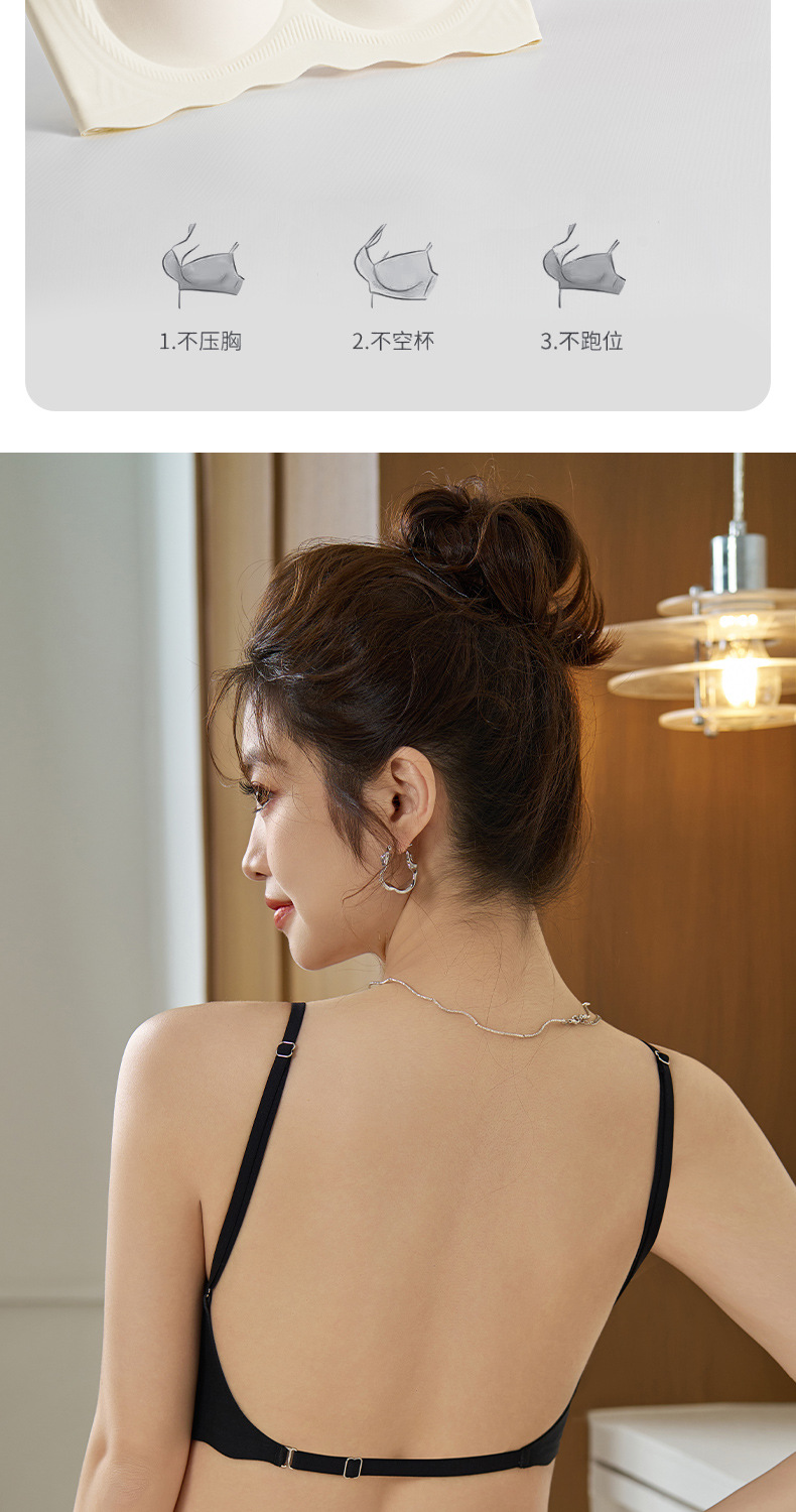 GD16 ropa interior de apoyo suave de espalda para mujeres sin marcas sin anillo de acero sujetador se reúne para evitar la caída de soporte superior sujetador de copa fija