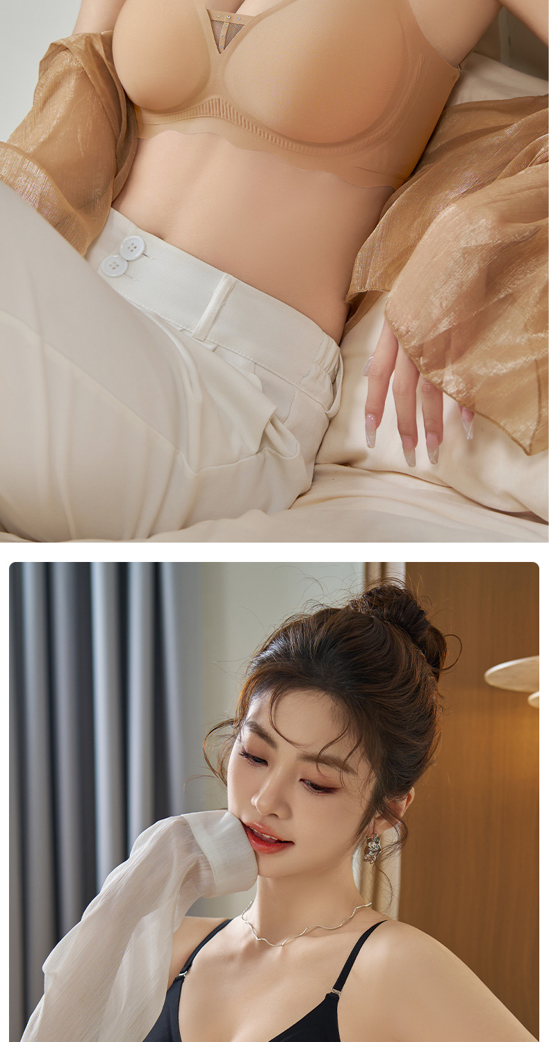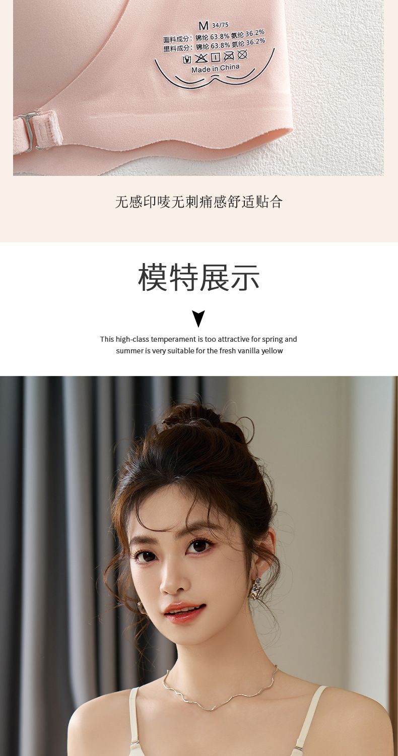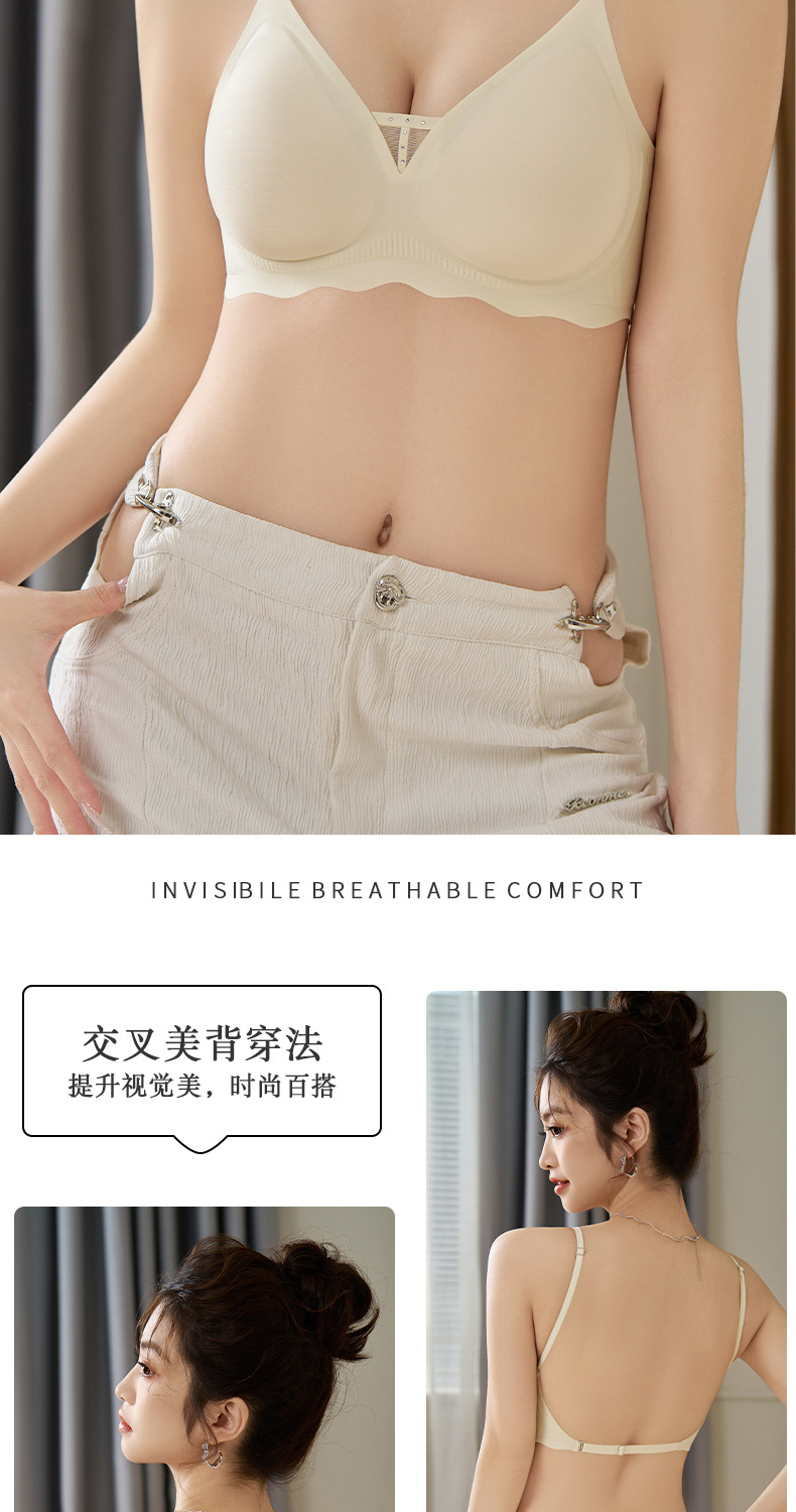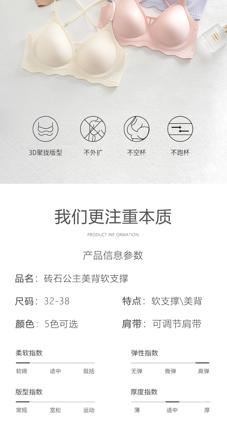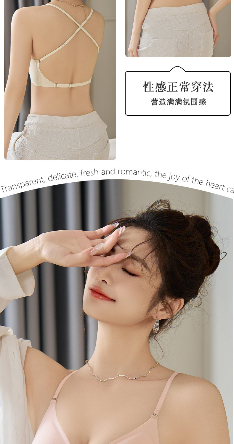 GD16 ropa interior de apoyo suave de espalda para mujeres sin marcas sin anillo de acero sujetador se reúne para evitar la caída de soporte superior sujetador de copa fija