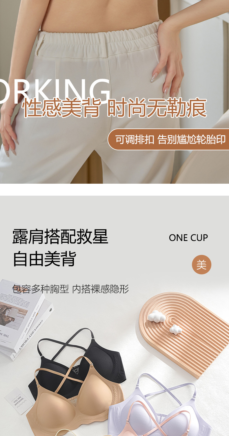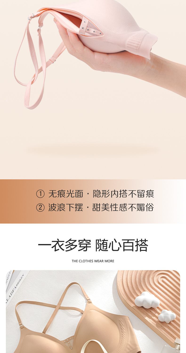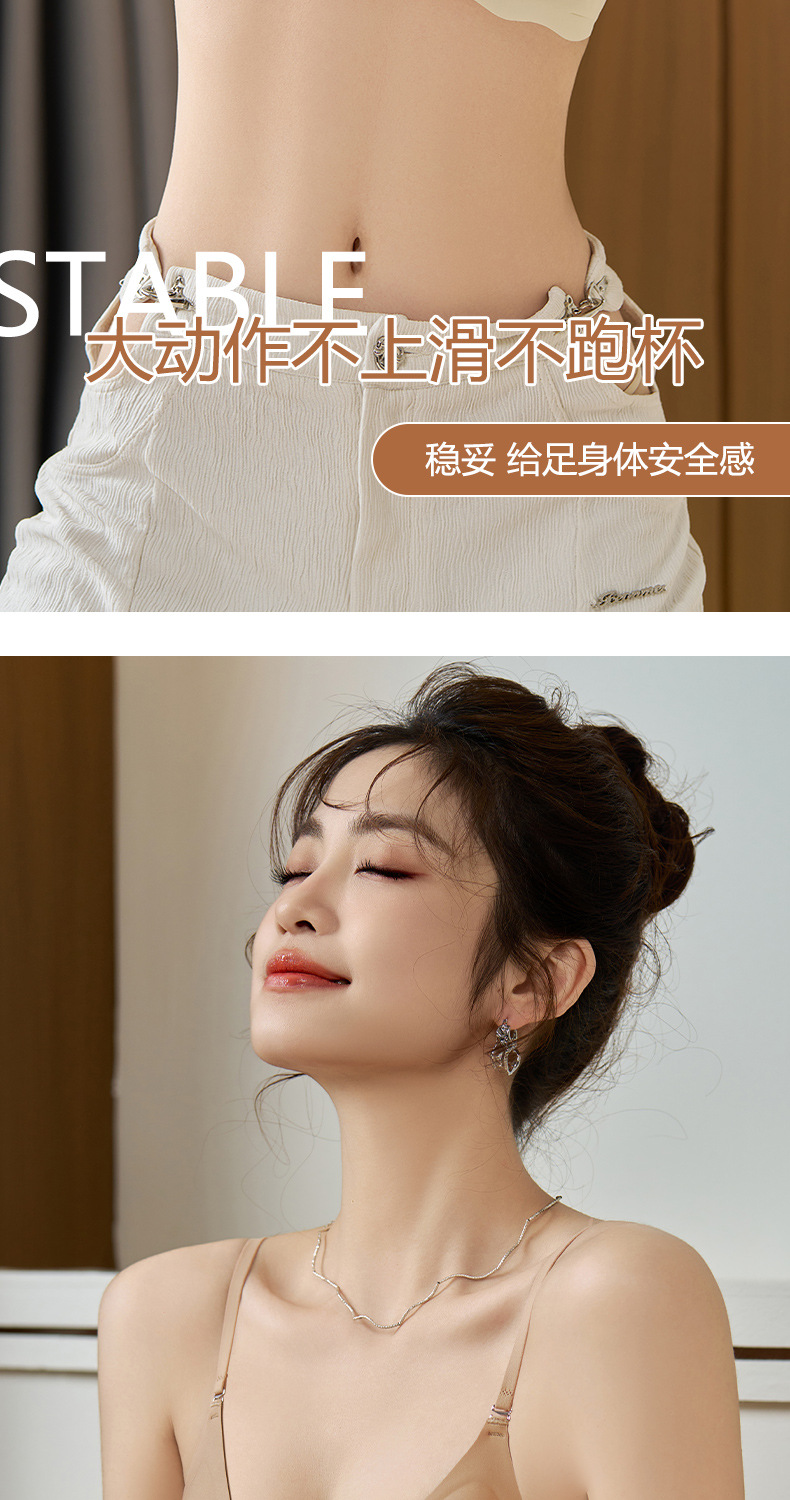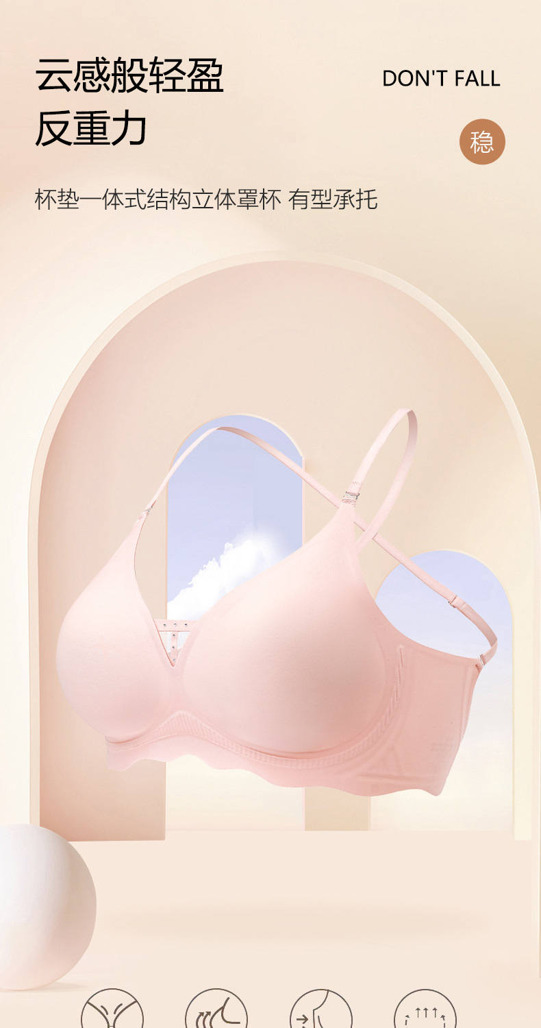 GD16 ropa interior de apoyo suave de espalda para mujeres sin marcas sin anillo de acero sujetador se reúne para evitar la caída de soporte superior sujetador de copa fija