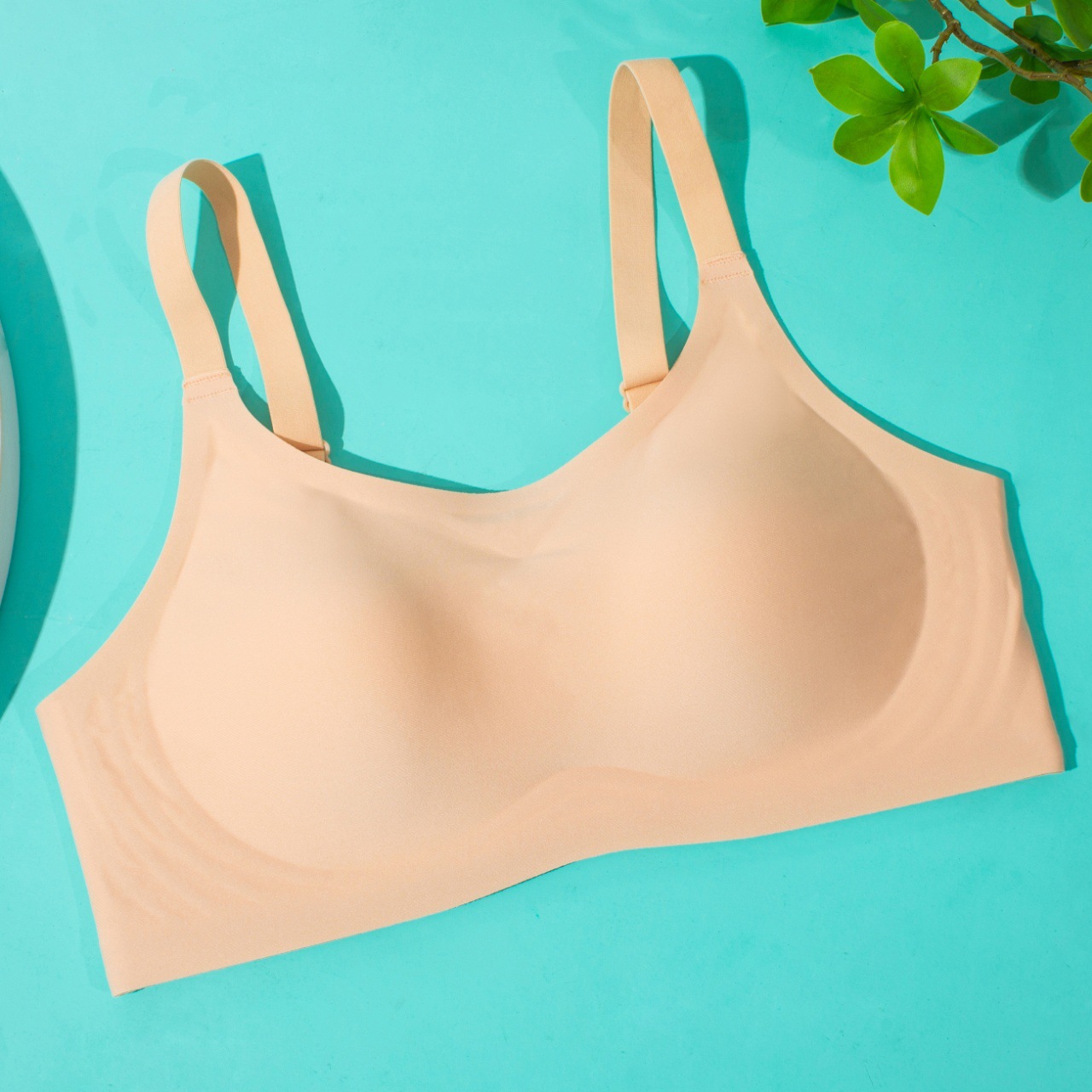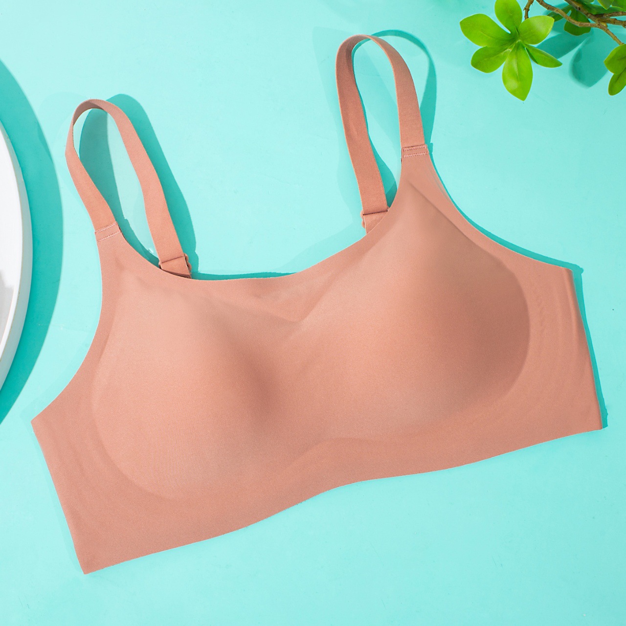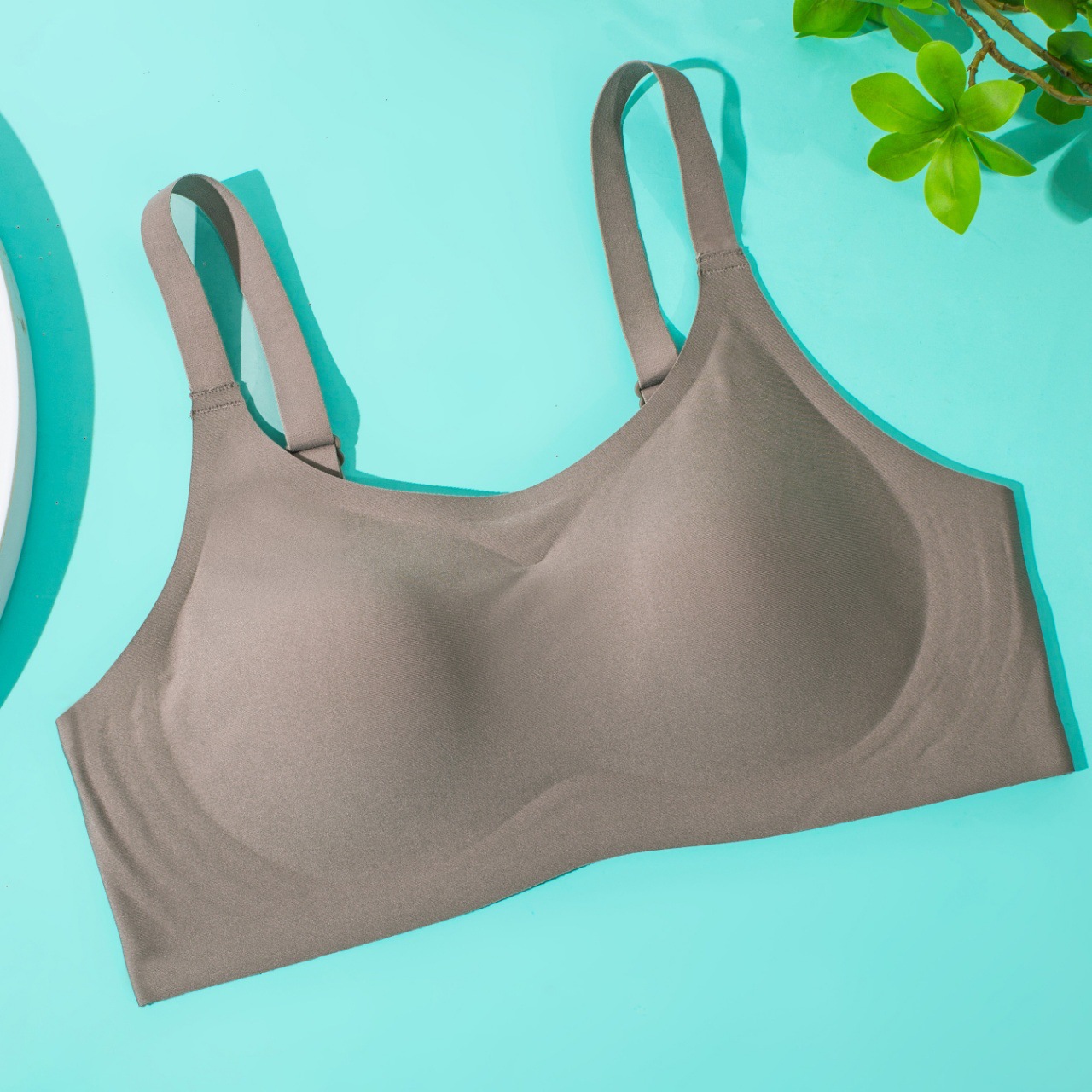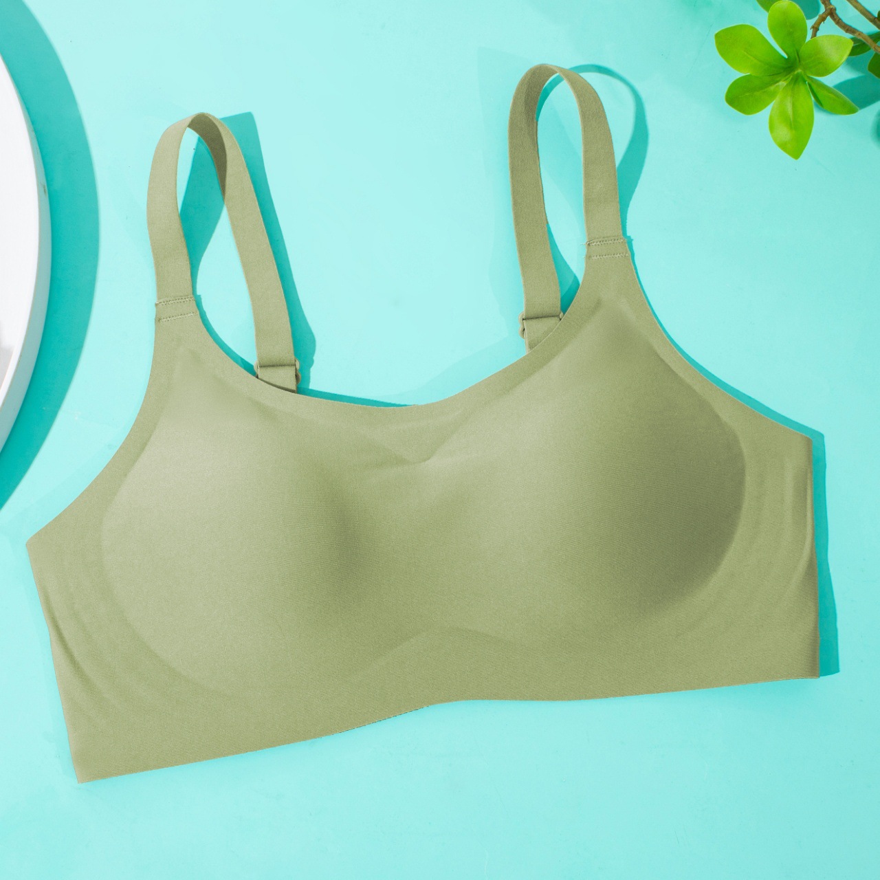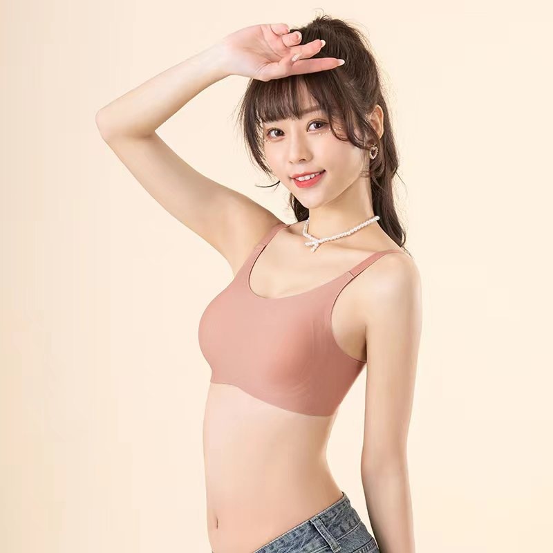 Pequeña cintura de hombro de cuello redondo jalea ropa interior damas sin marcas sin anillo de acero sujetador cerrado anti-caída sujetador de copa fija
