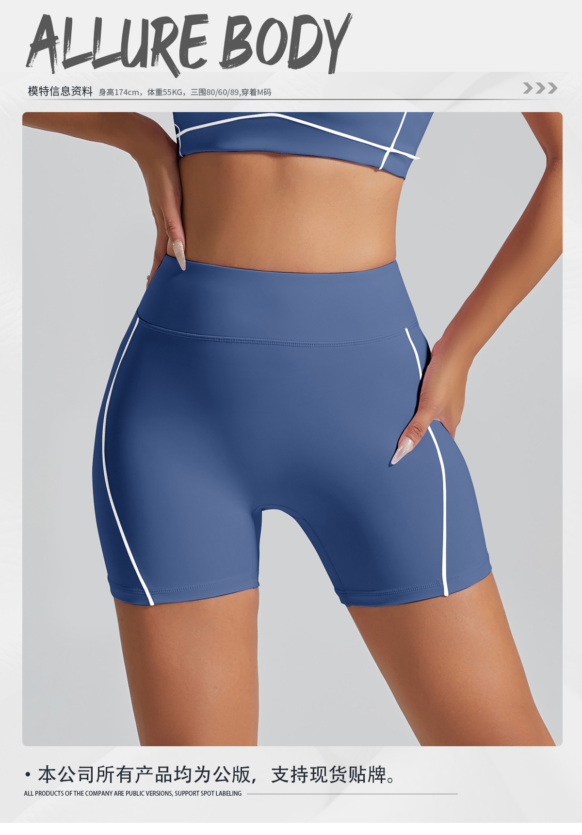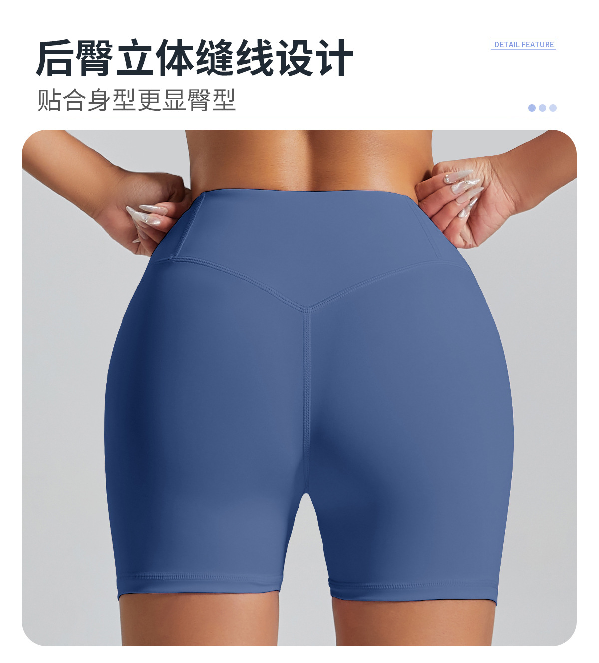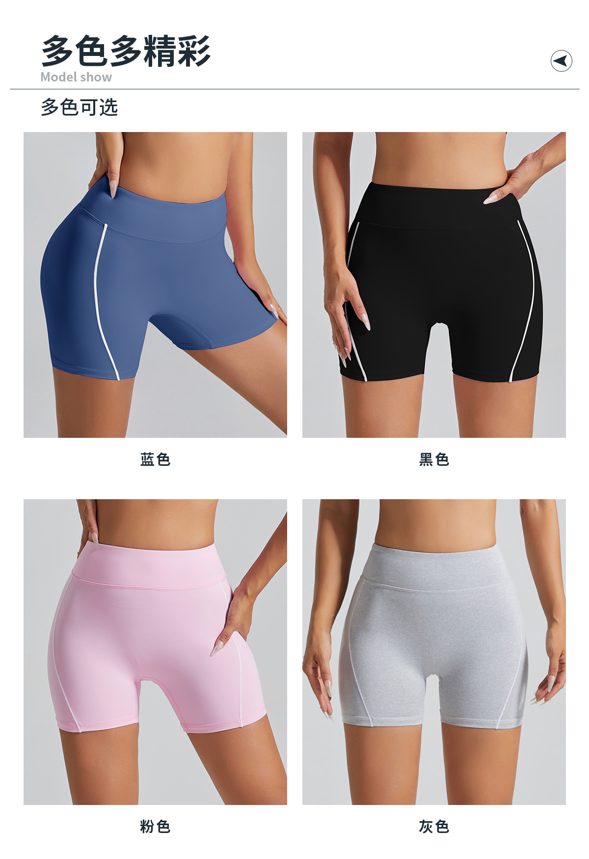 Pantalones cortos deportivos de color de contraste europeo y americano sin línea de vergüenza Cintura alta, ajustados desnudos, pantalones de yoga de fitness de cadera de melocotón, pantalones de tres puntos