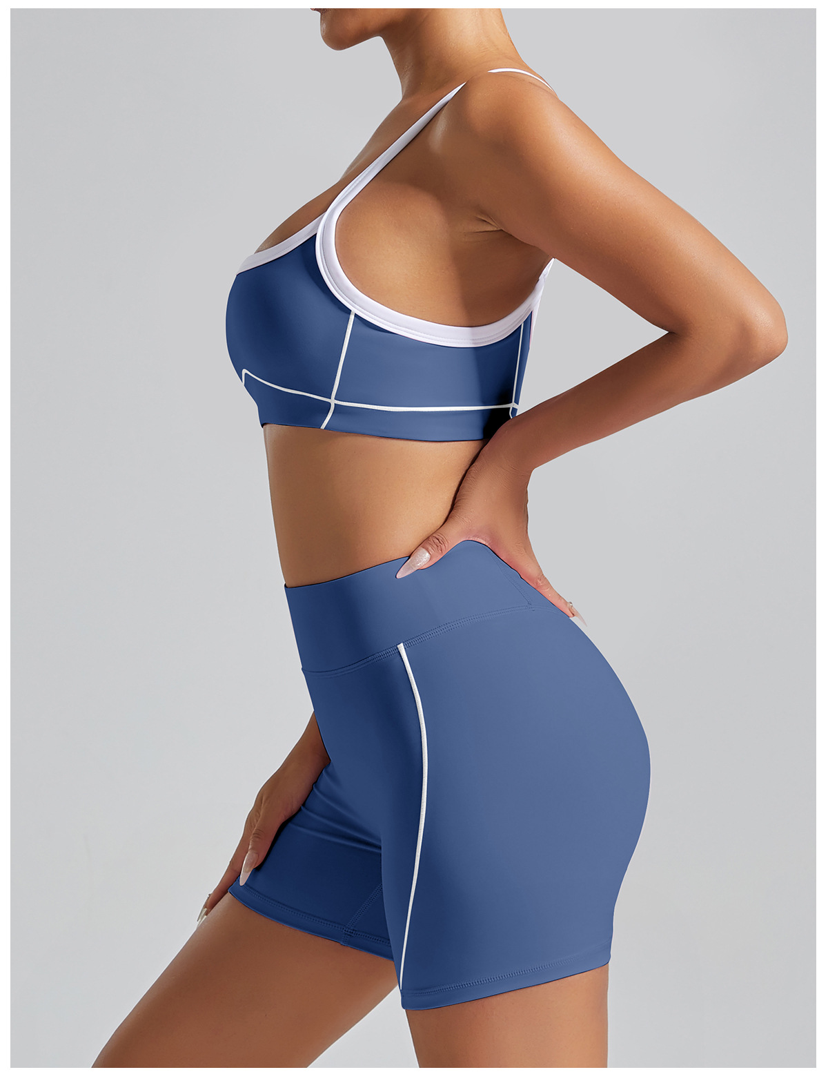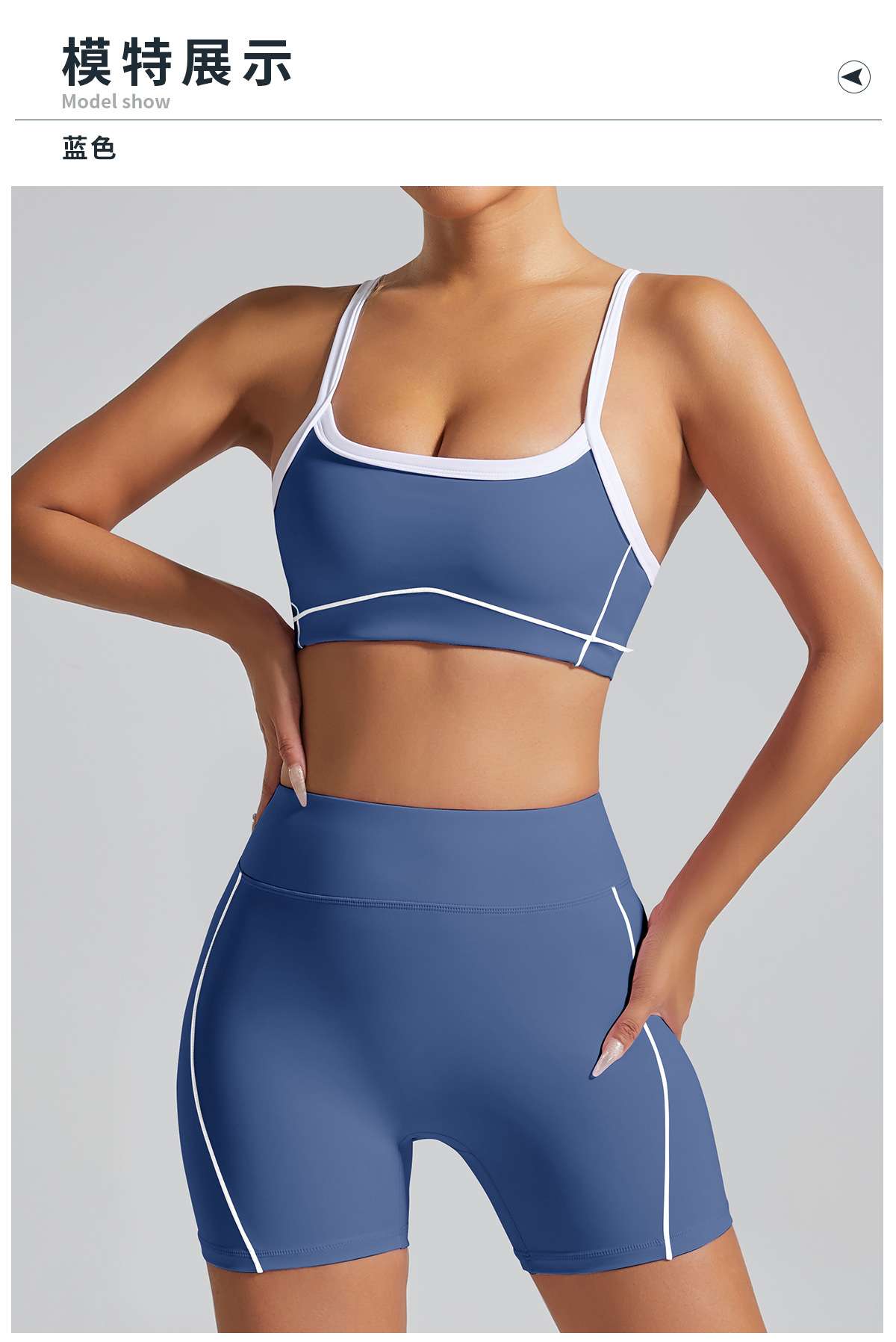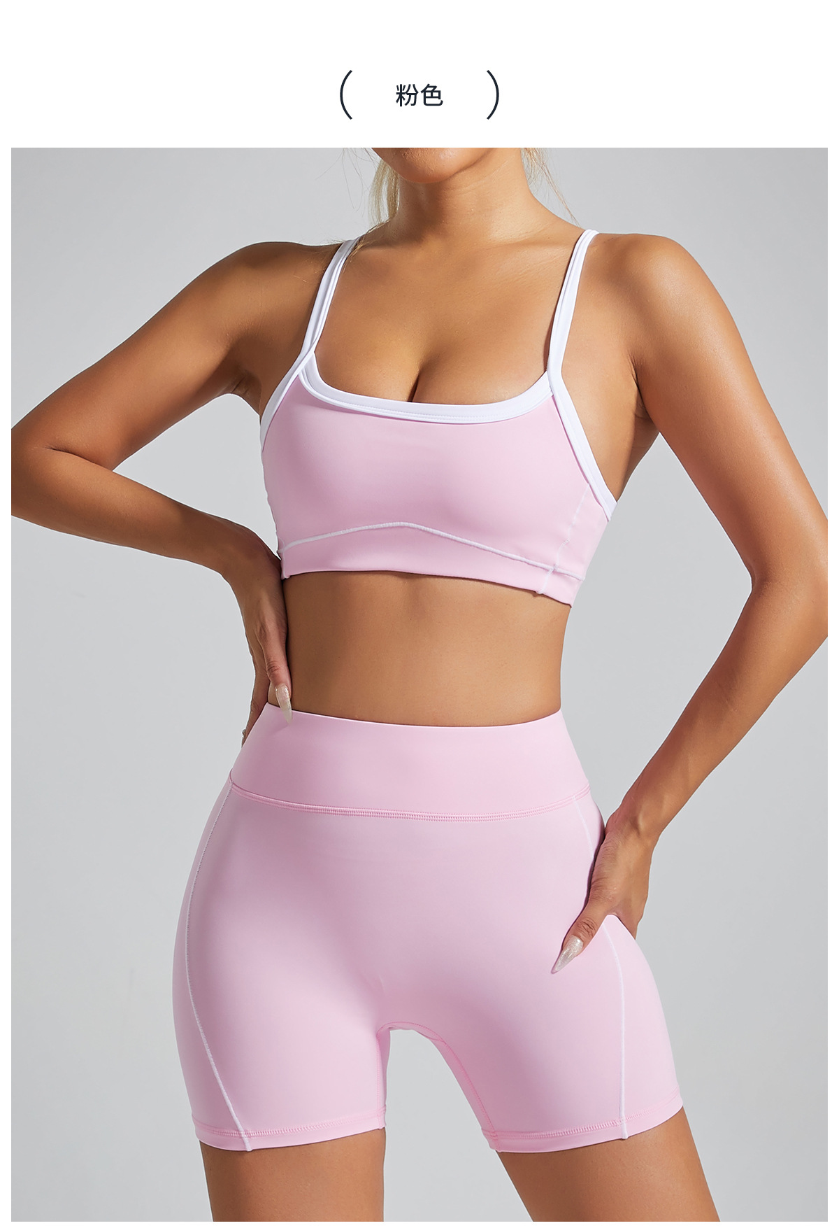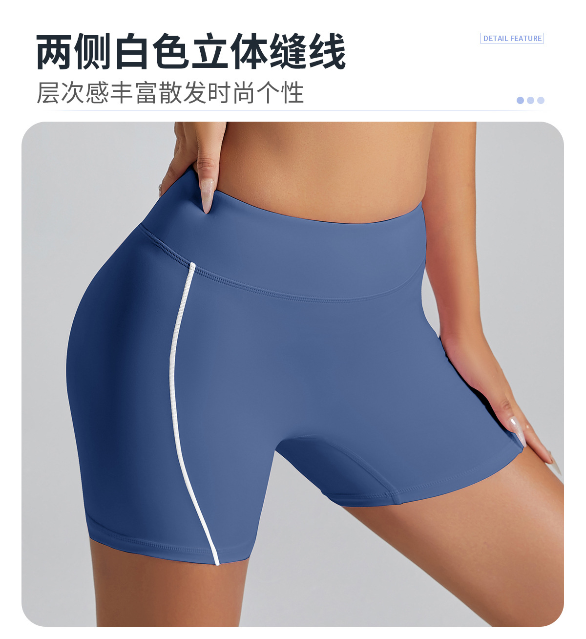 Pantalones cortos deportivos de color de contraste europeo y americano sin línea de vergüenza Cintura alta, ajustados desnudos, pantalones de yoga de fitness de cadera de melocotón, pantalones de tres puntos