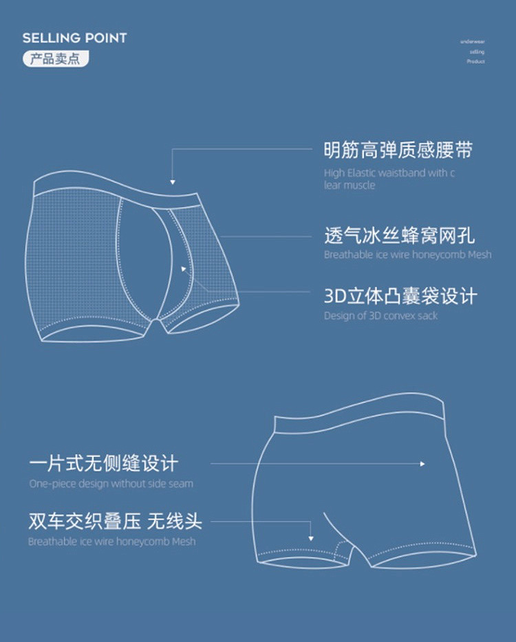 Pantalones interiores de hombre de verano de seda de hielo masculina agujeros respiratorios pro-piel transpirables antibacterianos entrepierna panty al por mayor agente