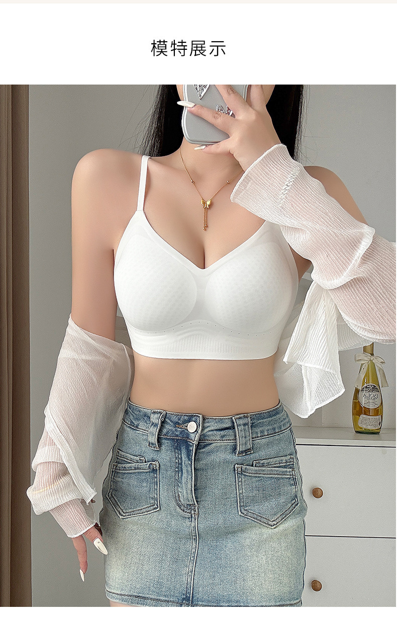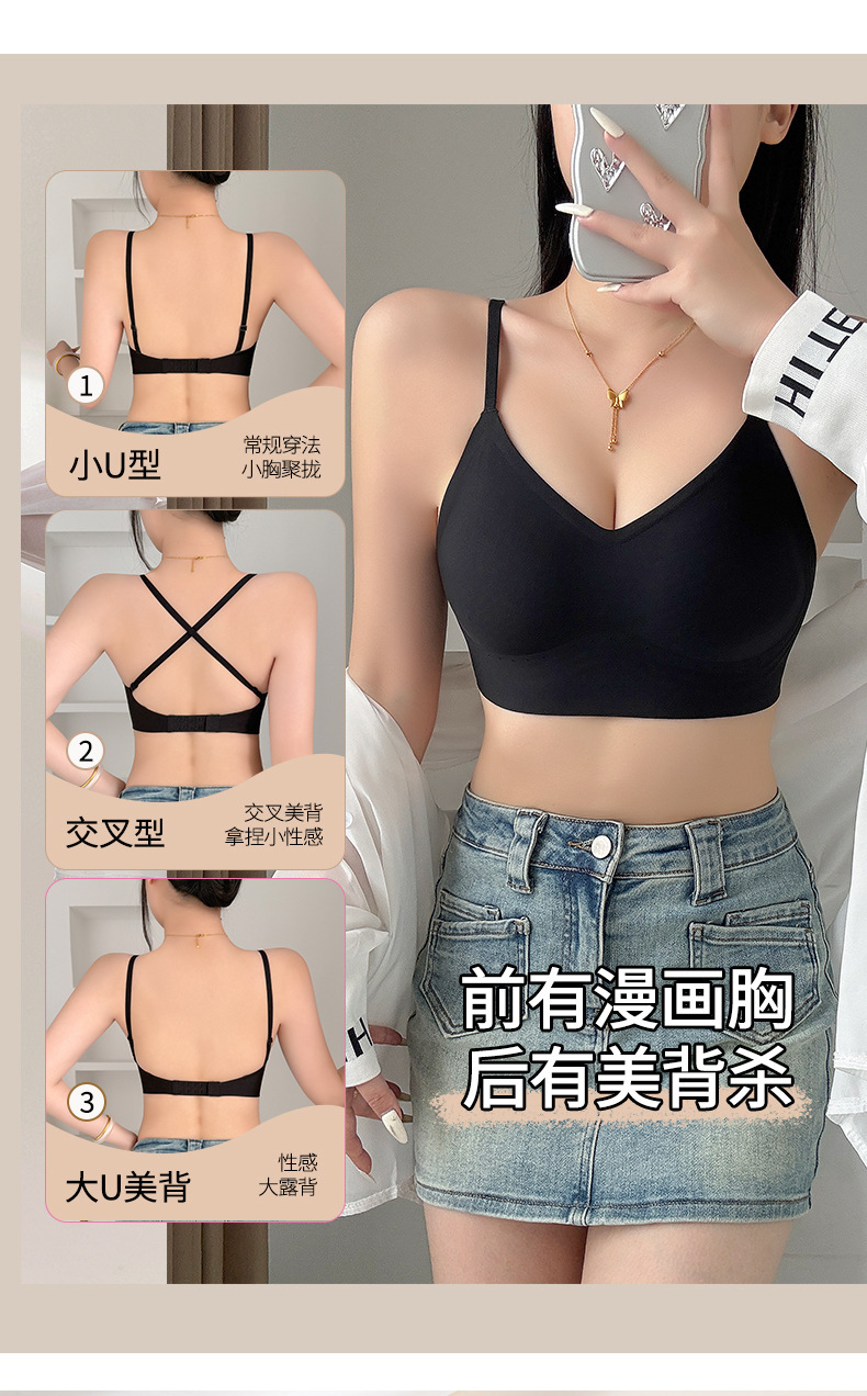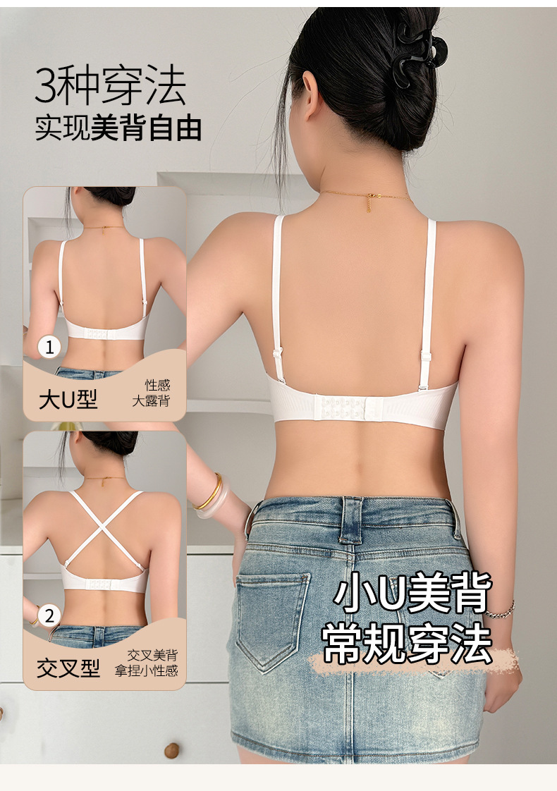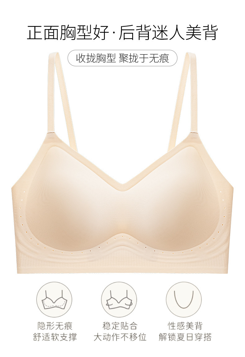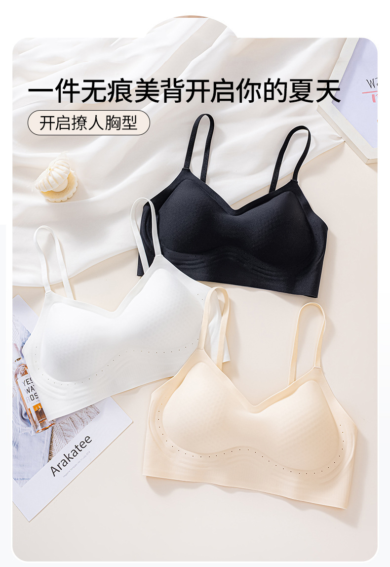 Verano ligero transpirable sin marcas belleza de espalda ropa interior damas sin anillo de acero sujetador se reúnen contra la caída delgada sujetador