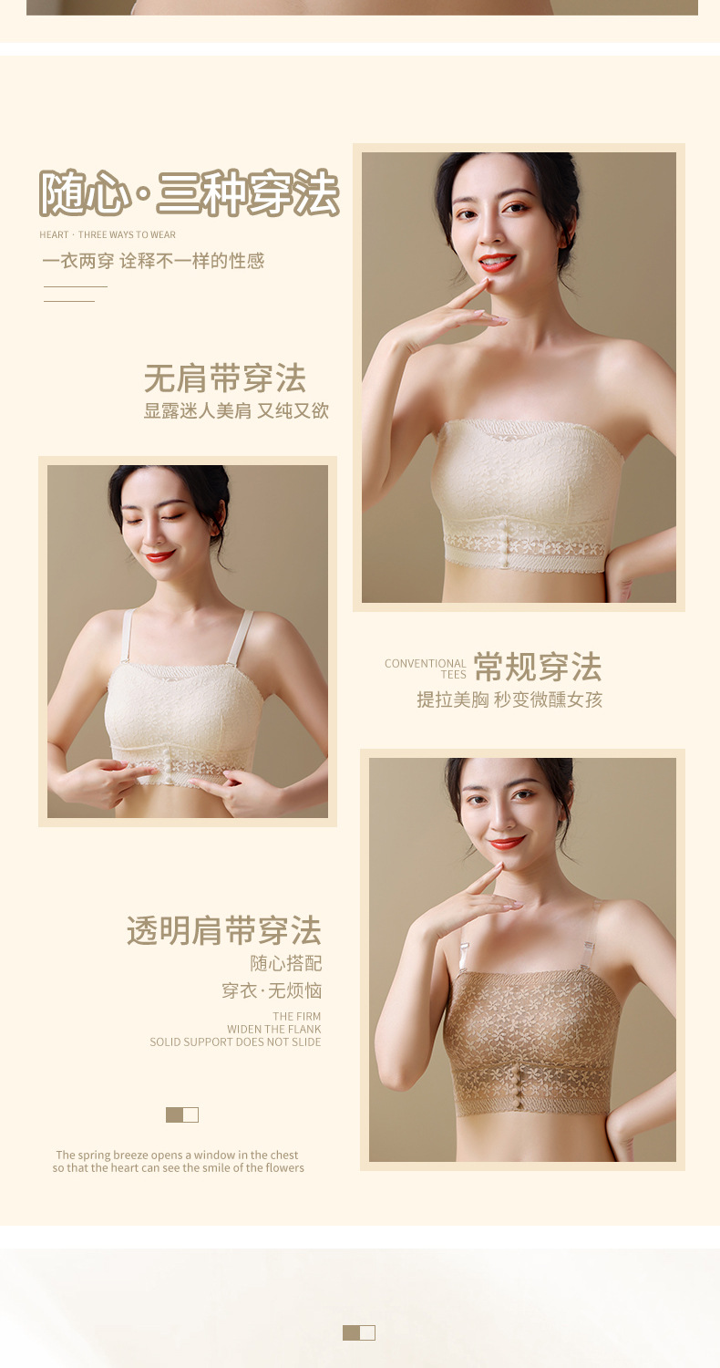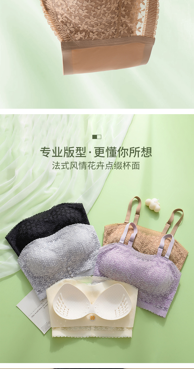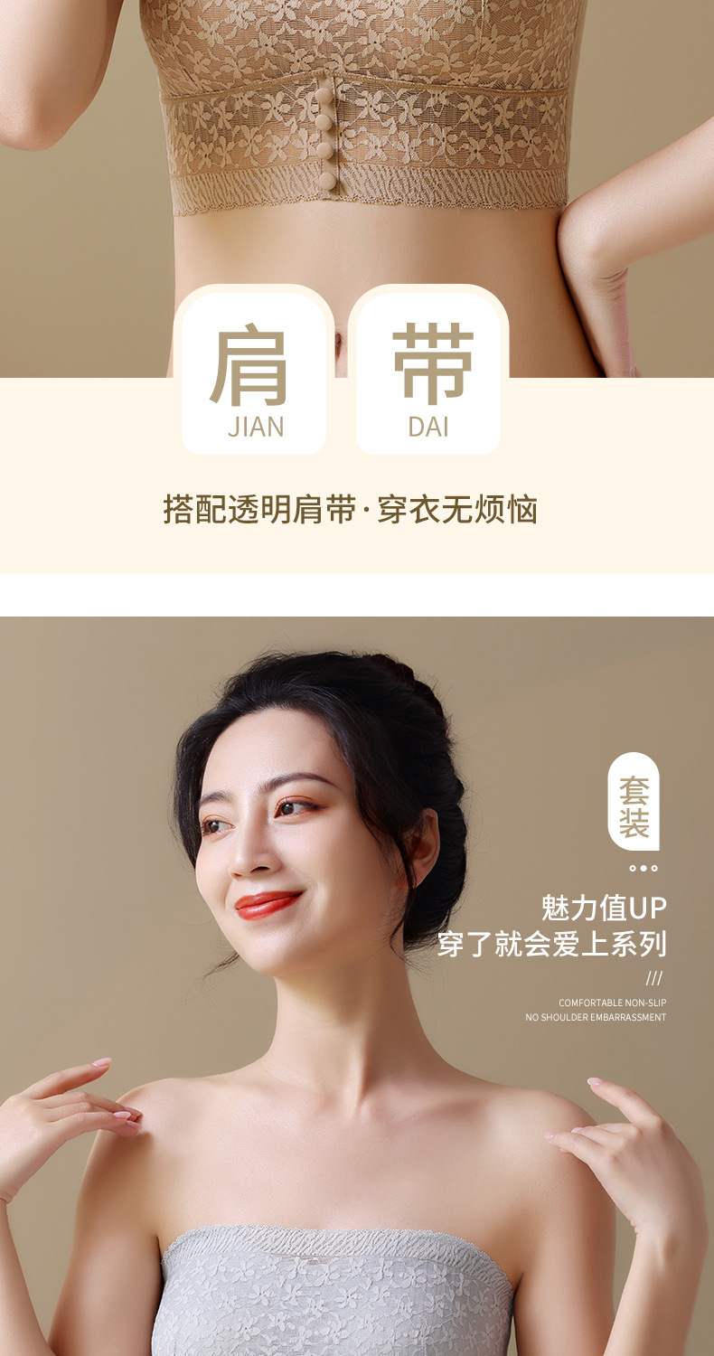 encaje francés sin cinturón de hombro ropa interior damas para limpiar el pecho anti-luz sujetador de hombro delgado en forma invisible