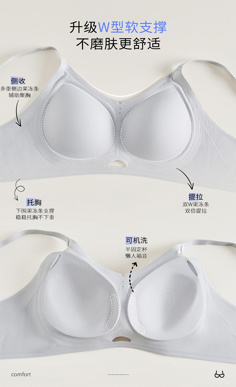 Verano hilo suave soporte ropa interior damas respirante sin marcas recopilación sujetador anti-caída soporte no correr taza sujetador delgado