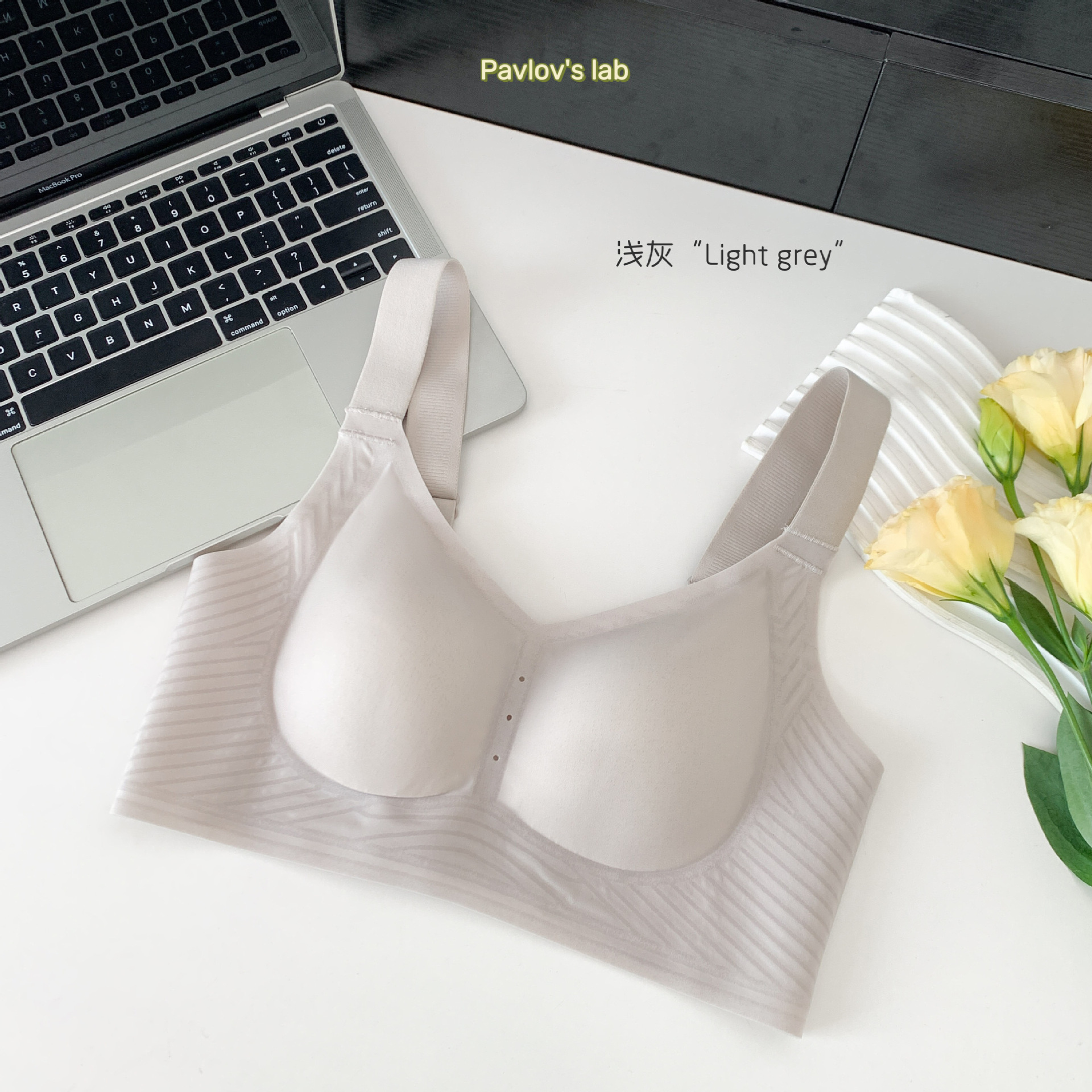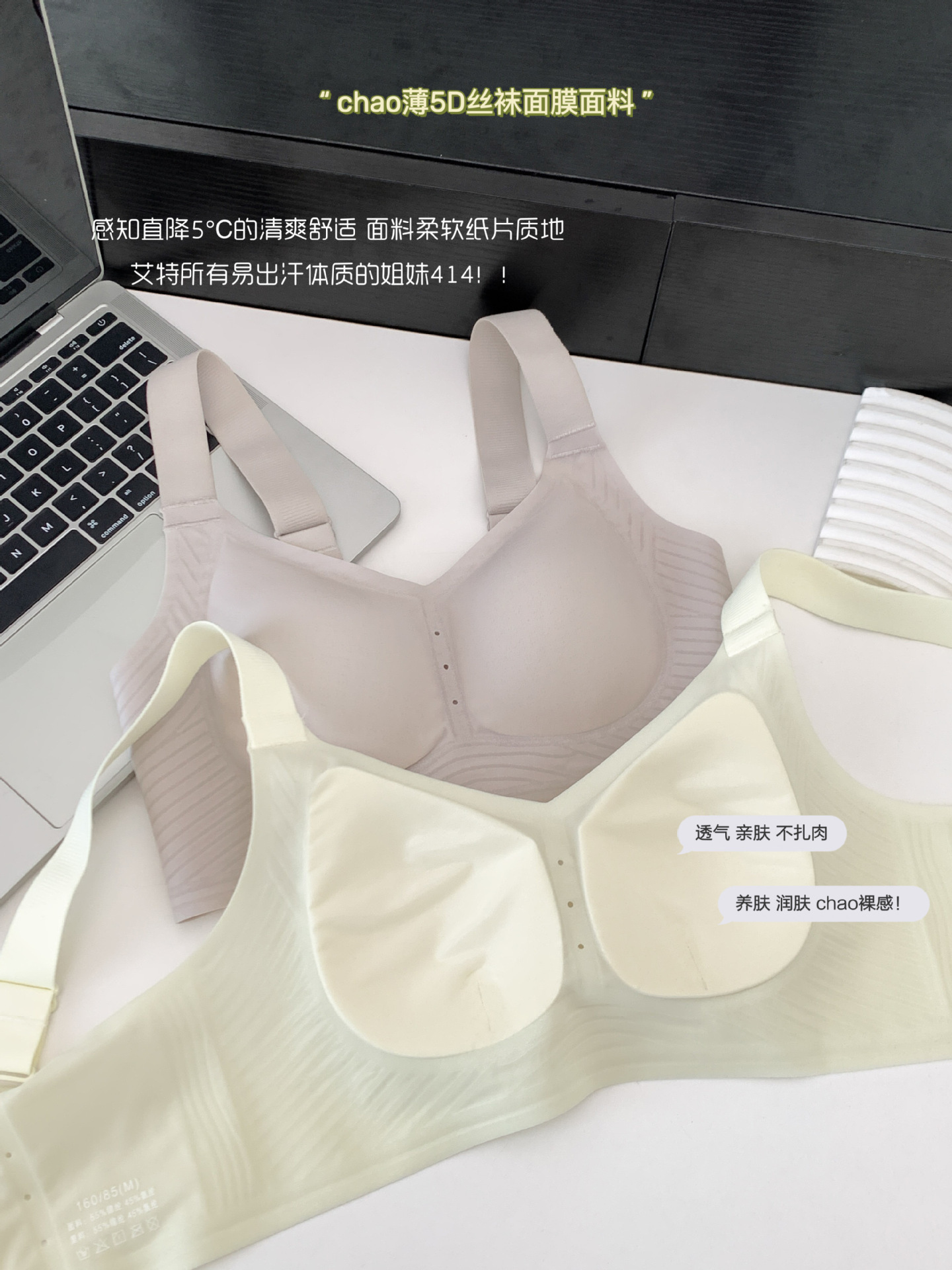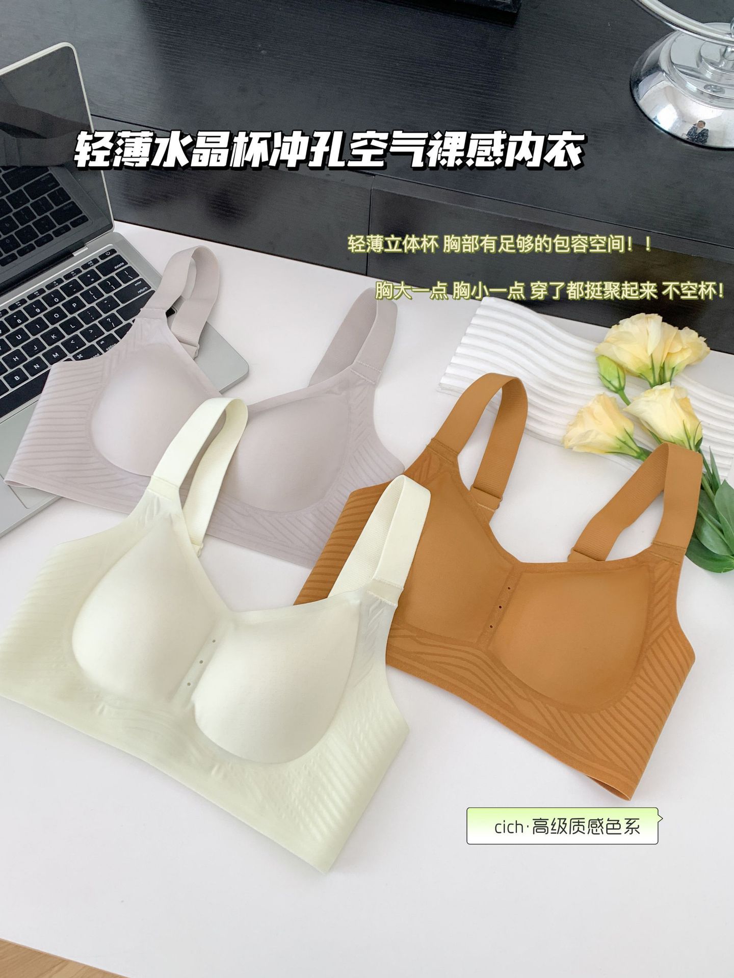 Ropa interior de copa de cristal desnuda ultrafina verano ligero, transpirable, sin costuras, sin anillo de acero, sujetador de pecho recogido, mujer