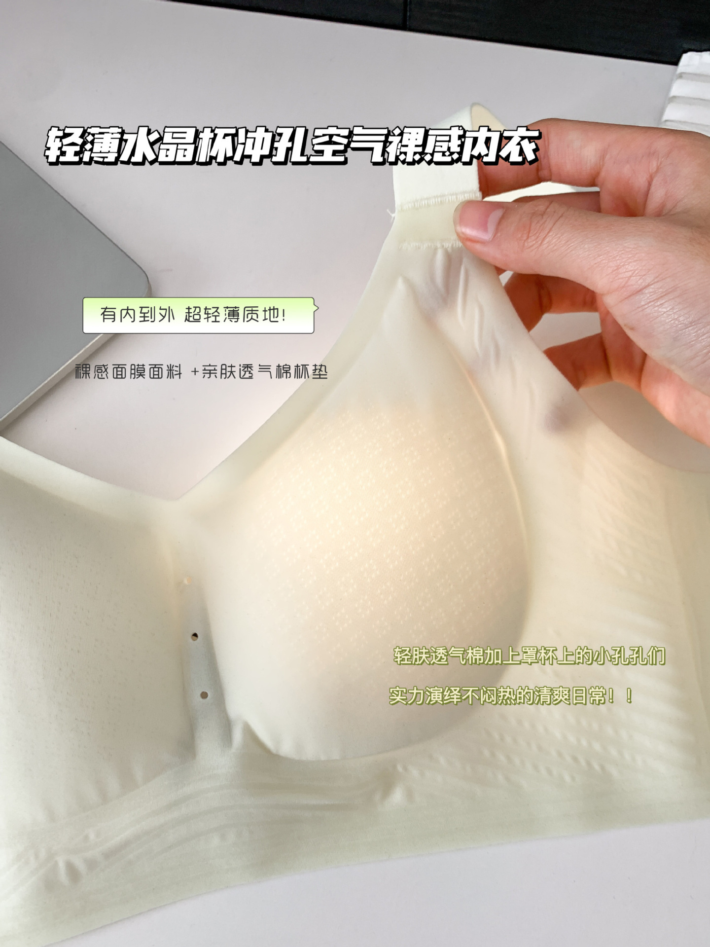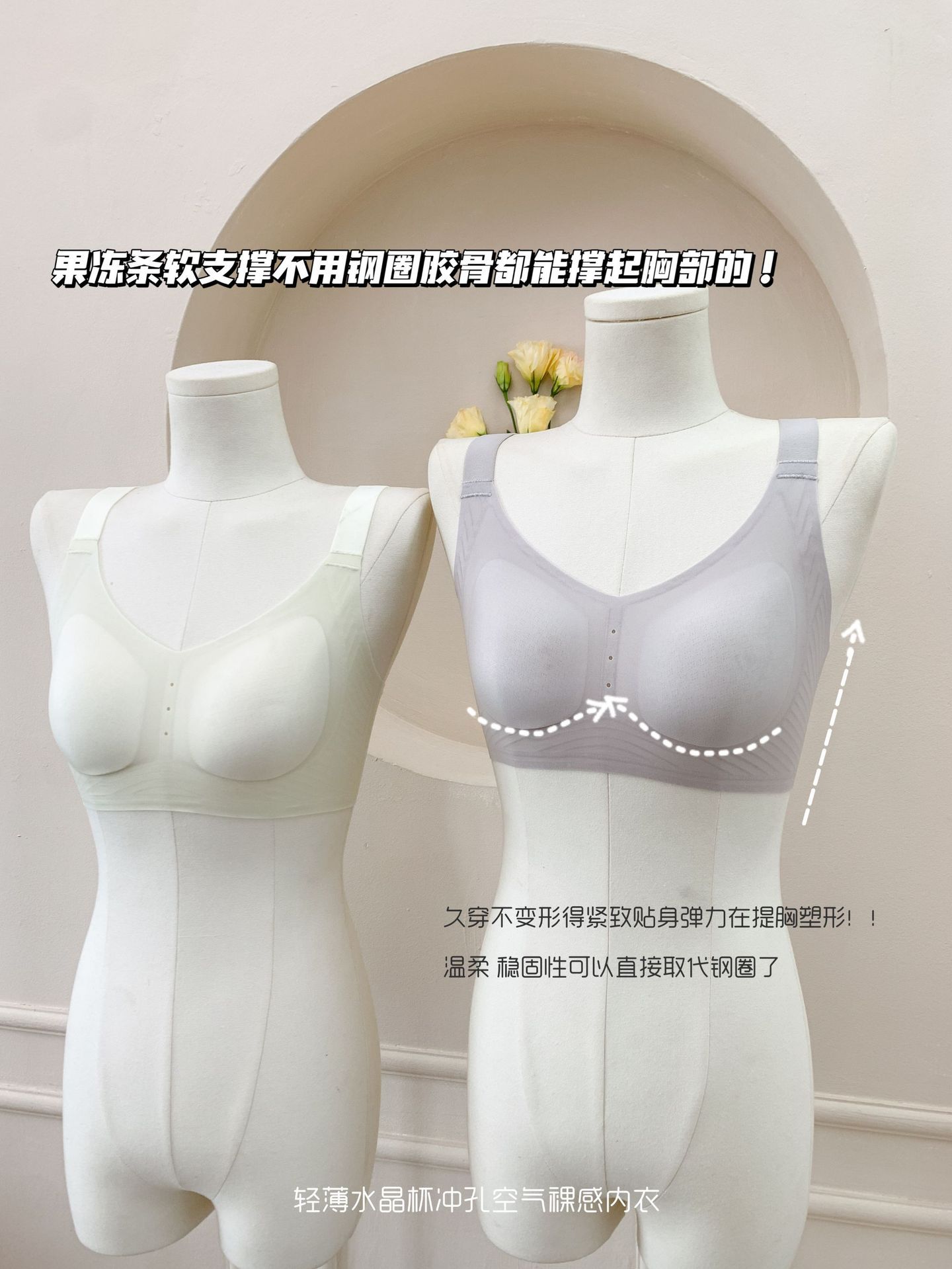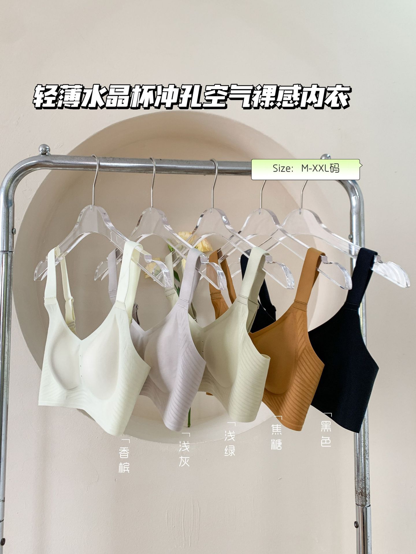 Ropa interior de copa de cristal desnuda ultrafina verano ligero, transpirable, sin costuras, sin anillo de acero, sujetador de pecho recogido, mujer