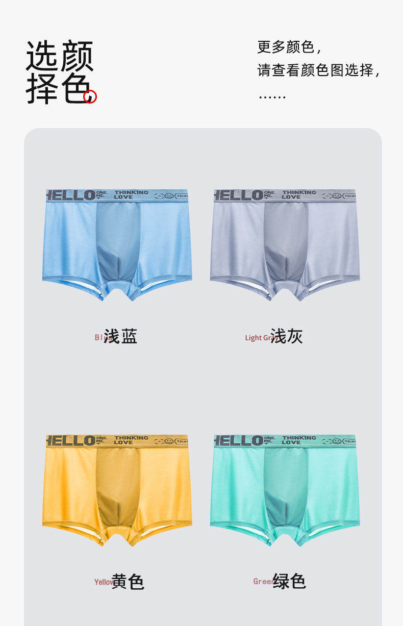 Pantalones interiores de seda de hielo para hombres, pantalones cortos de cuatro esquinas jóvenes, respirables y cómodos, entrepierna de grafeno antibacteriana, sensación fría y elástica para hombres.