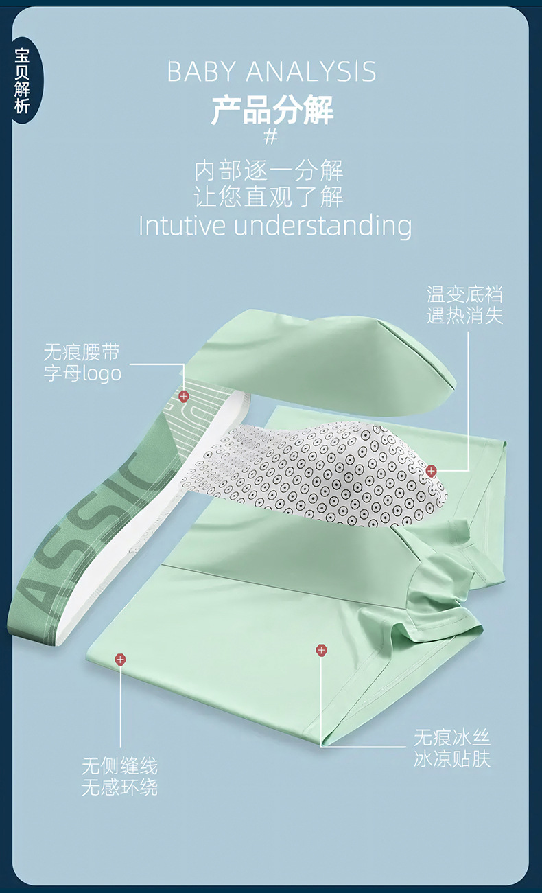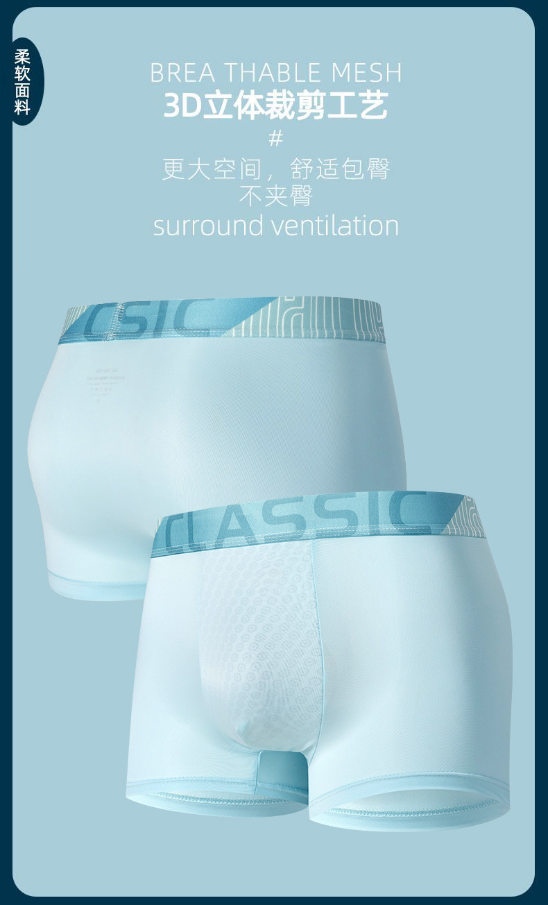 2025 verano hielo calentamiento de entrepierna de hombre calzoncillos de ángulo plano adolescentes antibacterianos respirables calzoncillos de hombre de cuatro cuernos