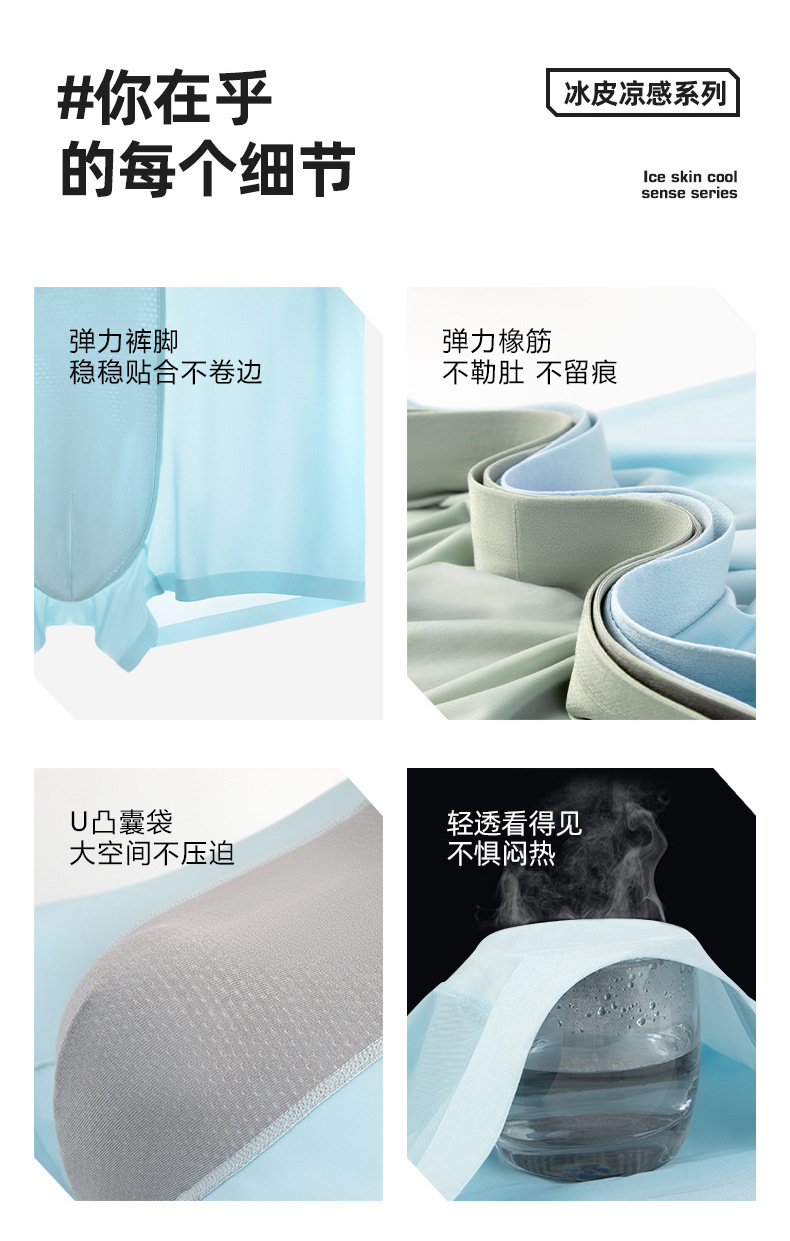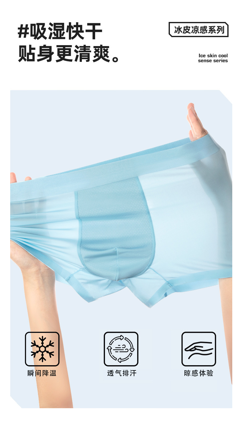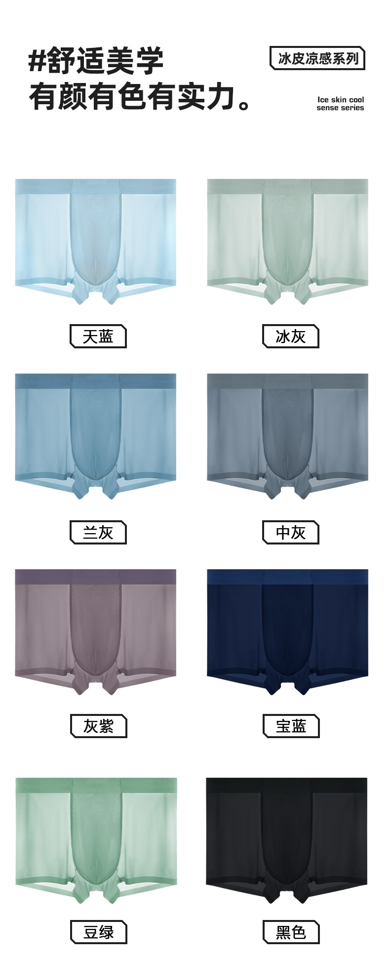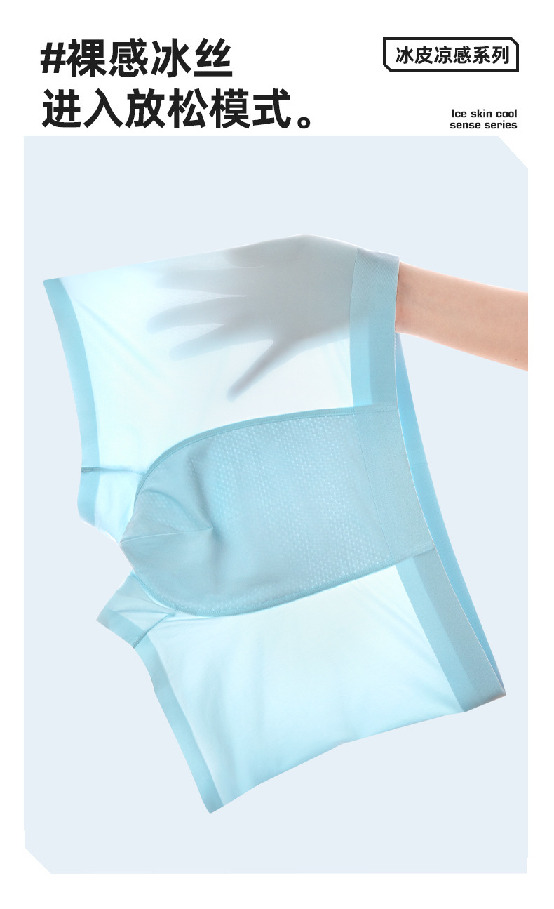Pantalones de hielo de verano antibacterianas de malla de hombre ventilación cintura media sin marcas cuadrangulares de ángulo plano Pantalones de hombre en stock al por mayor