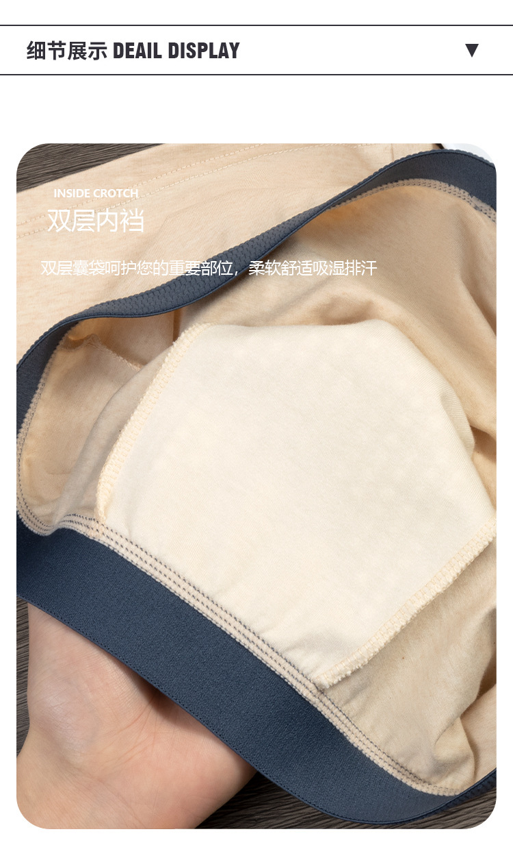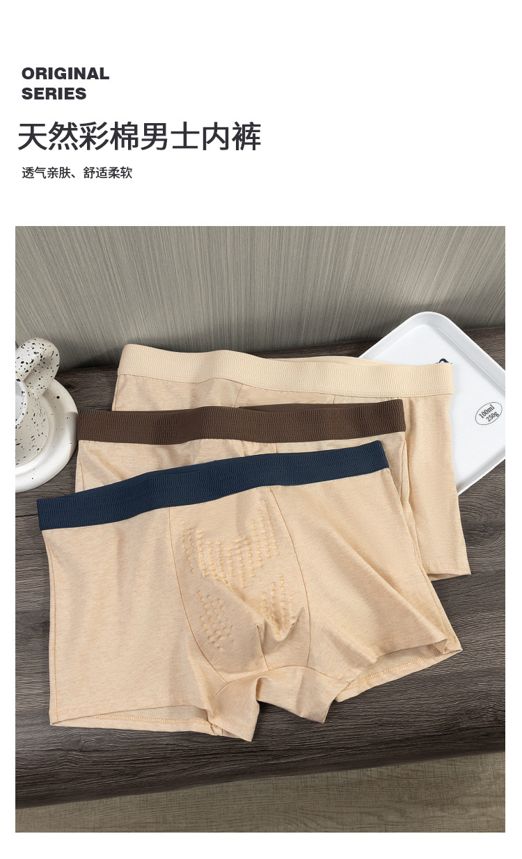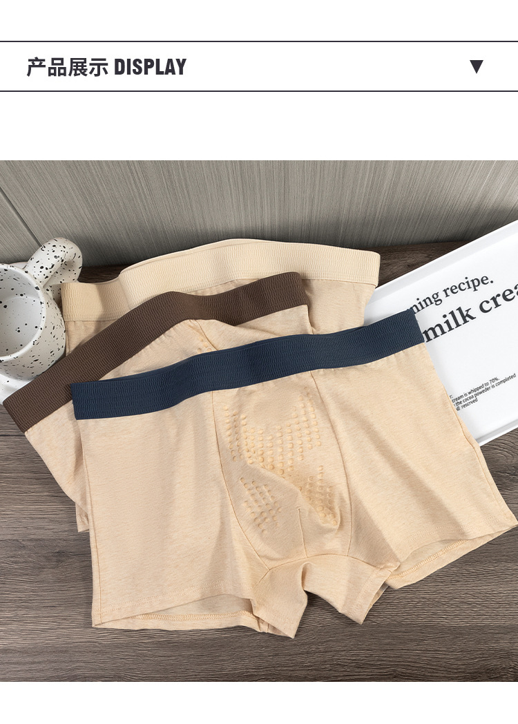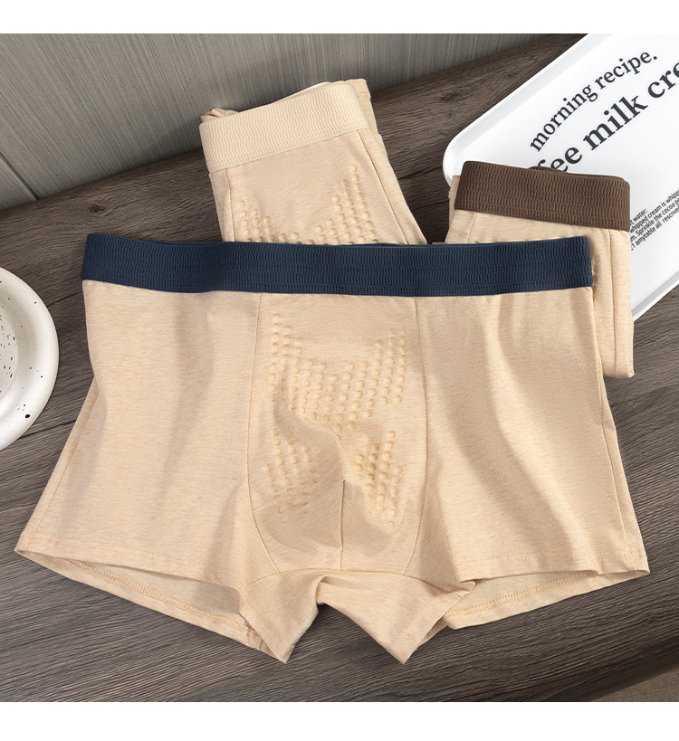 Algodón sin impresión y teñido, algodón hombre, calzoncillos de algodón, cordyceps masaje, partículas físicas antibacterianas, entrepierna, pantalones transpirables para hombres