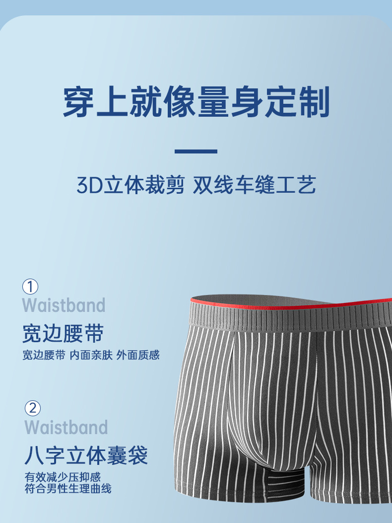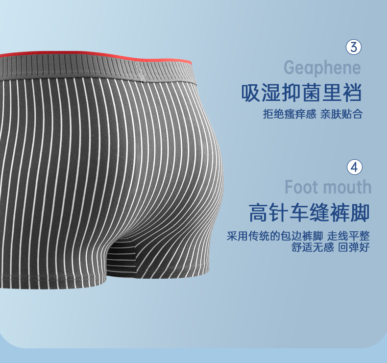 Pantalones íntimas de grafeno transpirables bajo cómodas rayas de ángulo plano pantalones cortos de cuatro ángulos adolescentes fuente fábrica al por mayor
