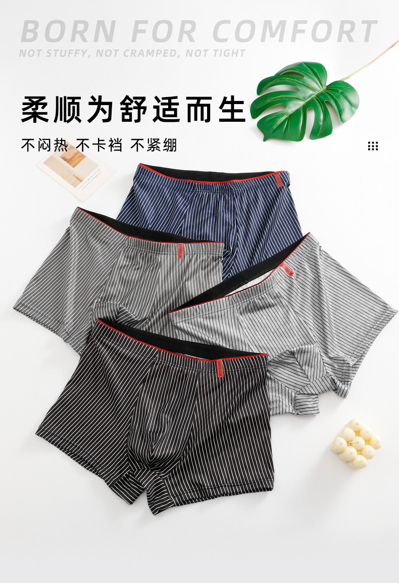 Nuevos pantalones interiores de hombre de cintura media cómodos y respirables antibacterianos entrepierna de hombre clásico a rayas pantalones adolescentes al por mayor