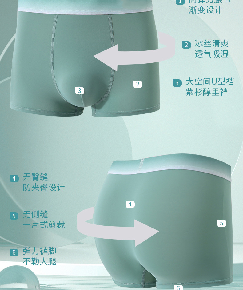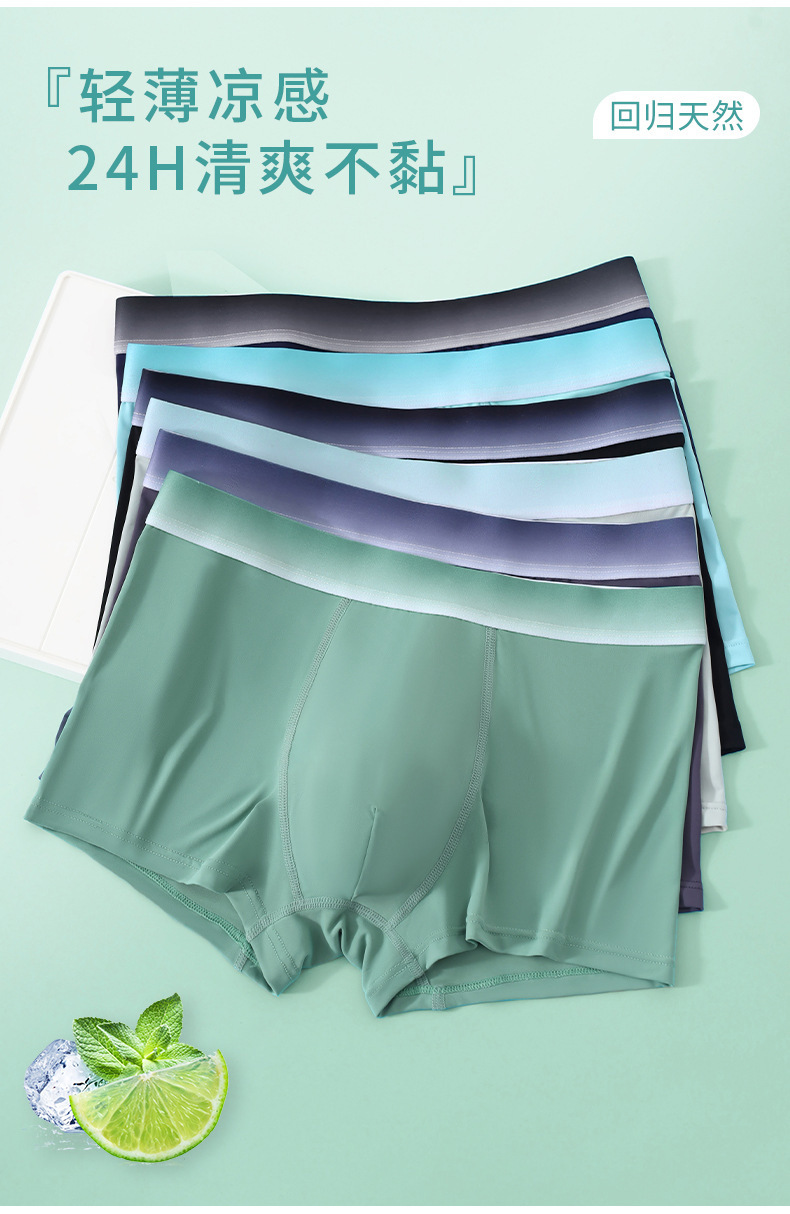 Pantalones interiores de hombre, pantalones de cuatro cuadrados de hielo sin marcas antibacterianas, pantalones cortos de ángulo plano de tamaño grande, cabeza de verano, delgados