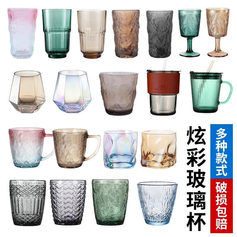 Taza de vidrio de color brillante taza de whisky de geometría de hielo taza de jugo taza de vino taza de flores taza de color set al por mayor