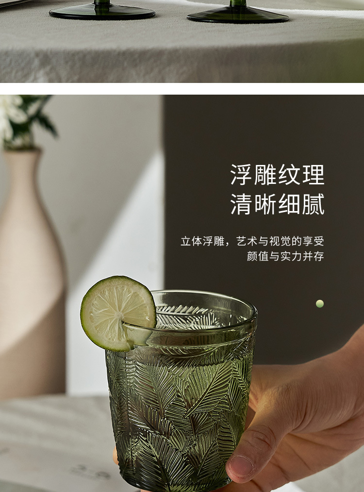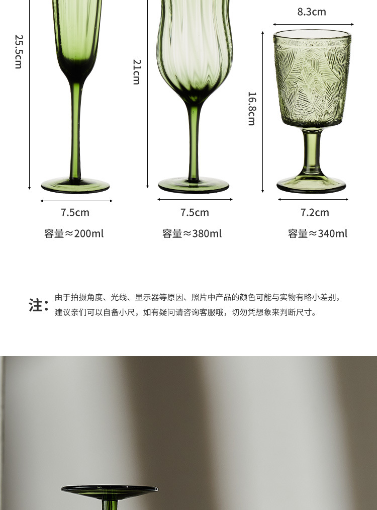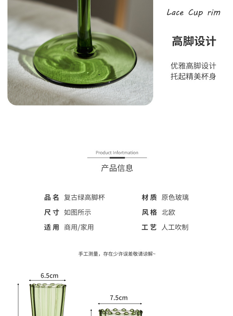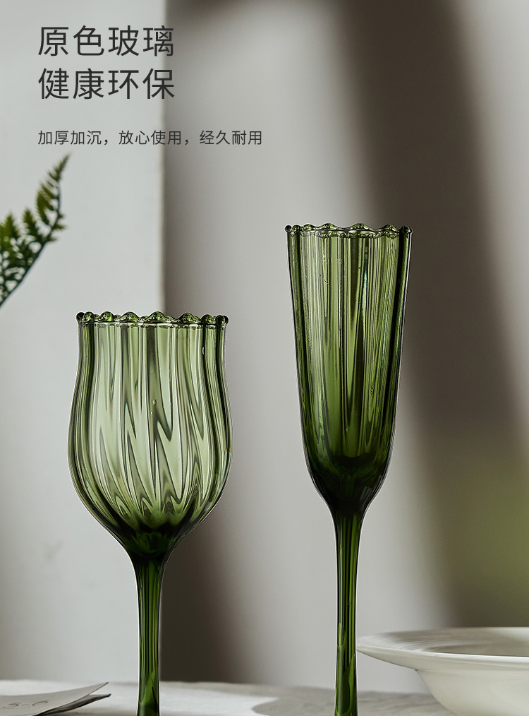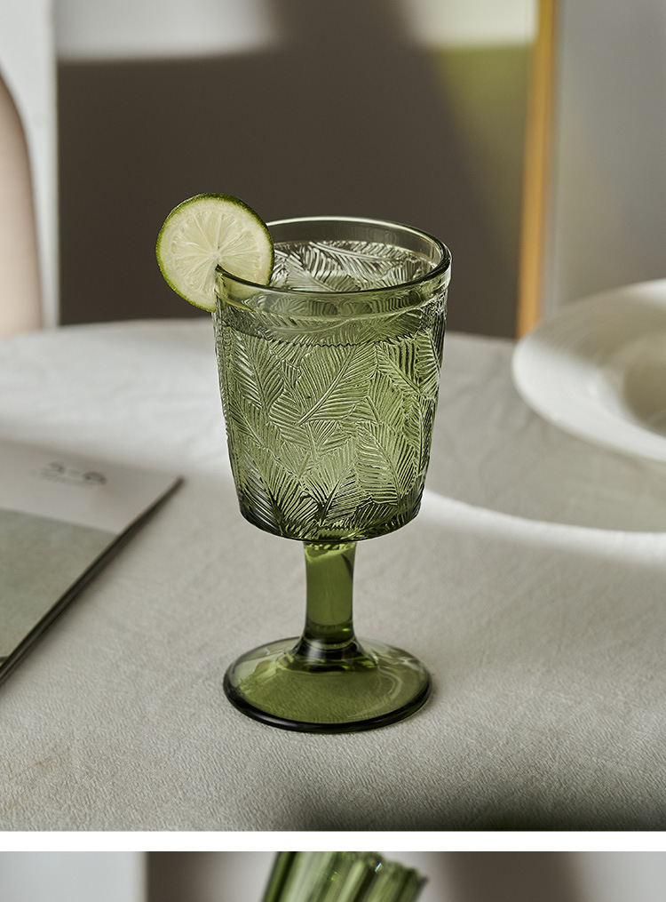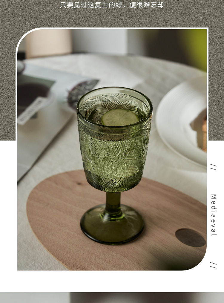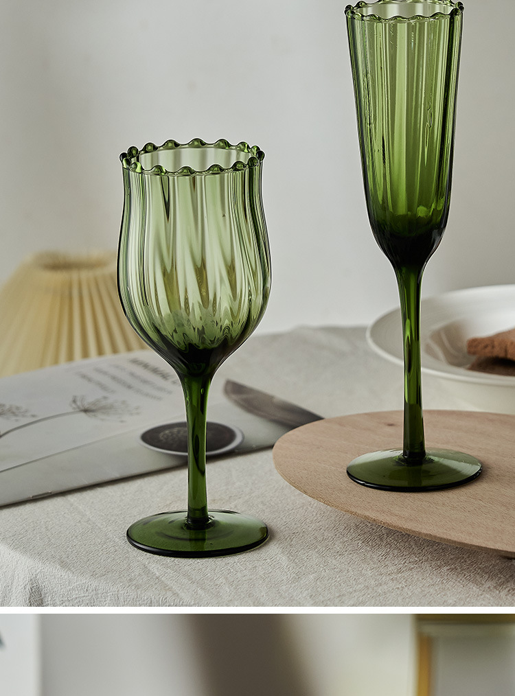 Encaje verde rojo copa de vino francés retro Copa vidrio corrugado estilo chino champán mundo floración nicho