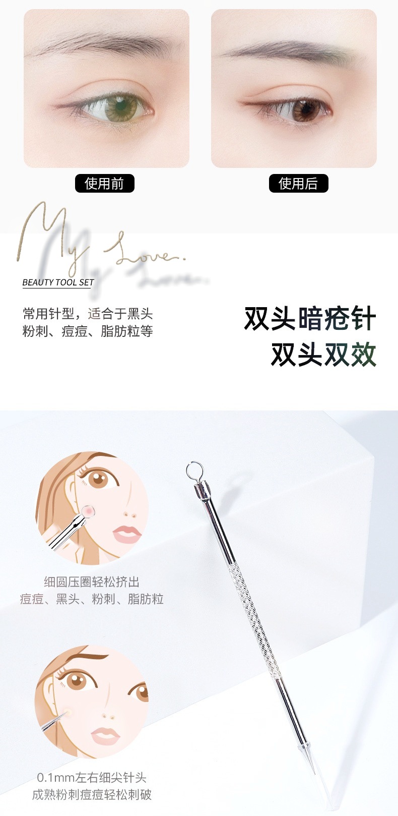 Nuevo conjunto de aguja de acné de cejas de acero inoxidable, aguja de acné de acné de doble uso de cejas de acero inoxidable