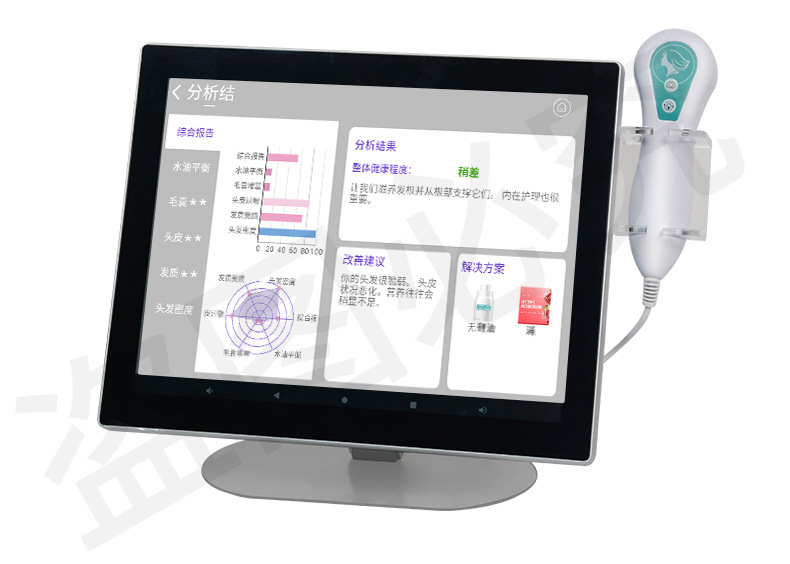 | Color | Analizador de detección de cuero cabelludo AI de 15 pulgadas (con lente dual), Analizador de detección de piel AI de 15 pulgadas, Analizador de detección de piel AI + cuero cabelludo 15 pulgadas |