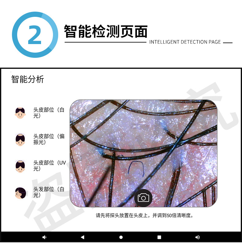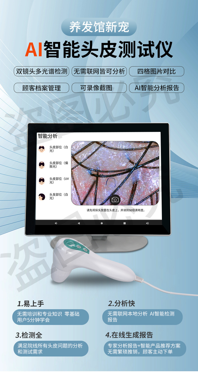 Detector de cuero cabelludo analizador de folículos capilares AI inteligente de alta definición todo en uno aparato de prueba de poros capilares especial para salón de cuidado del cabello