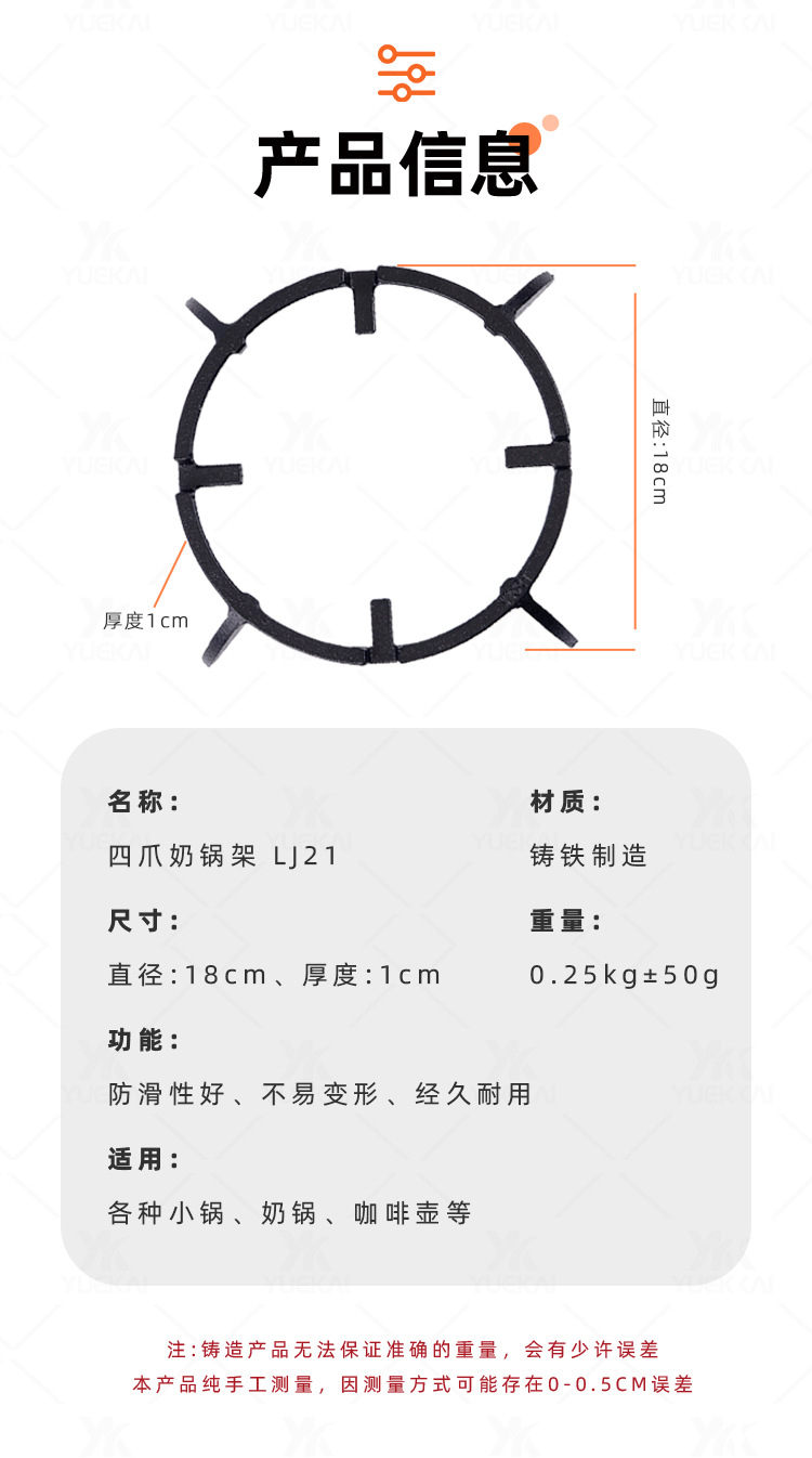 Yue Kai estante de hierro fundido pan de leche antideslizante anti-vibración cuatro garras para cocina de gas especial soporte pan personalizado