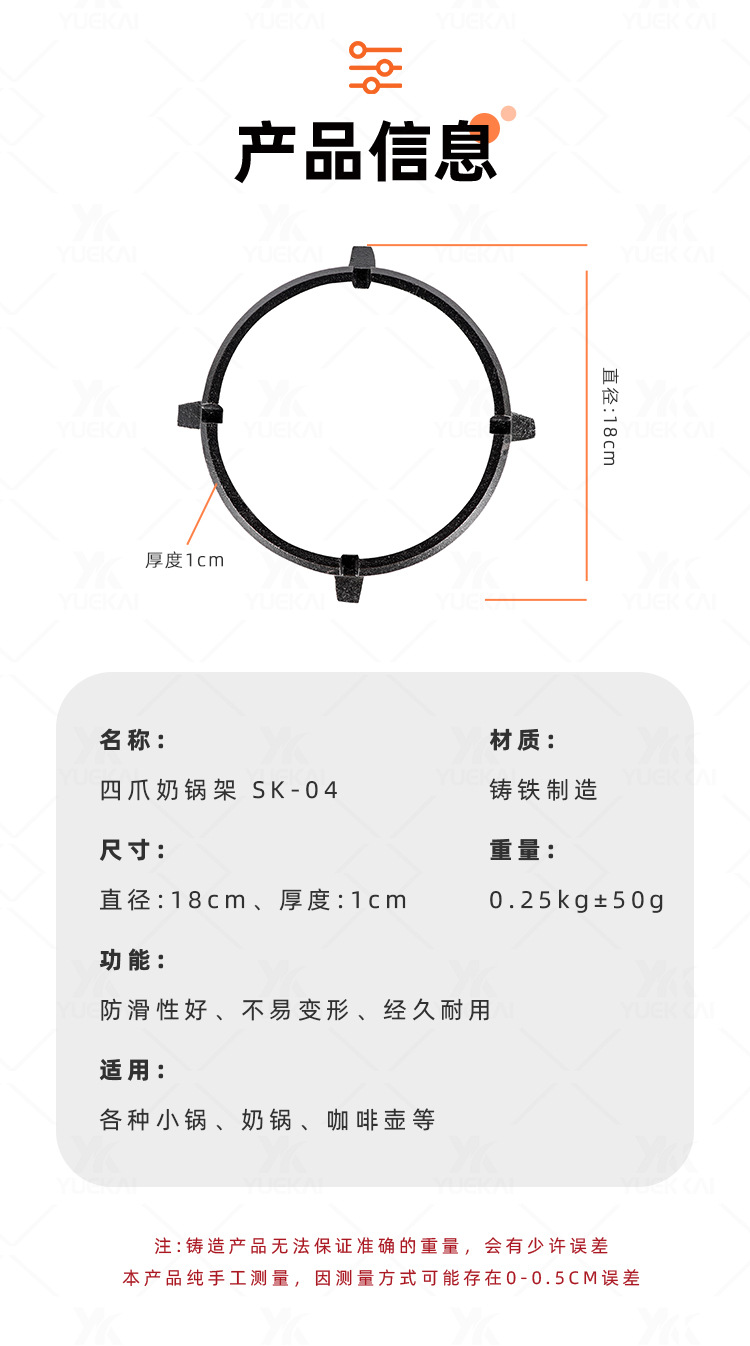 YueKai hierro fundido cuatro garras leche panela antideslizante estofado de gas antideslizante soporte accesorios de gas personalizados