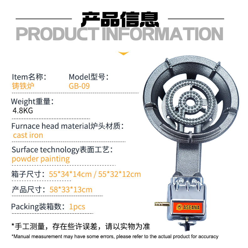 Estufas de gas de hierro fundido transfronterizas estufas de fuego rápido al aire libre de una sola estufas de fuego rápido con cinturón de estufas de fuego rápido de seguridad de apagado accesorios de estufas de gas comerciales de gran escala