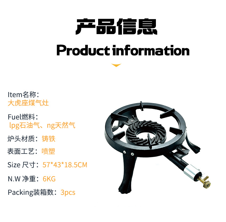 Ahorro de energía transfronterizo tigre estufas de gas de gas de hierro de cocina de hierro de cocina portátil al aire libre acampado al por mayor