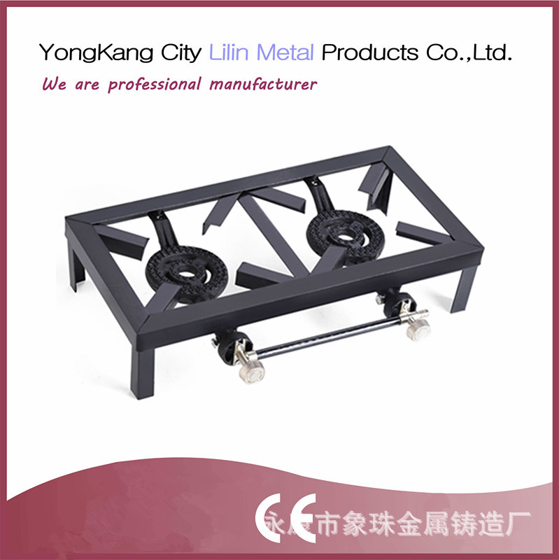 Horno de hierro fundido de acero en ángulo transfronterizo Estufa de gas comercial Estufa desmontable Camping portátil al aire libre Estufa doble de hierro fundido al por mayor