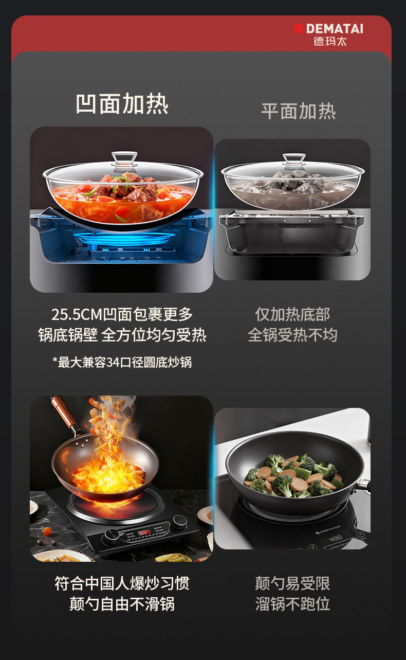 DEMATAI estufas electromagnéticas cóncavas para el hogar, un nuevo conjunto completo de estufas de fuego fuerte con una olla, estufas de batería de alta potencia, estufas comerciales.