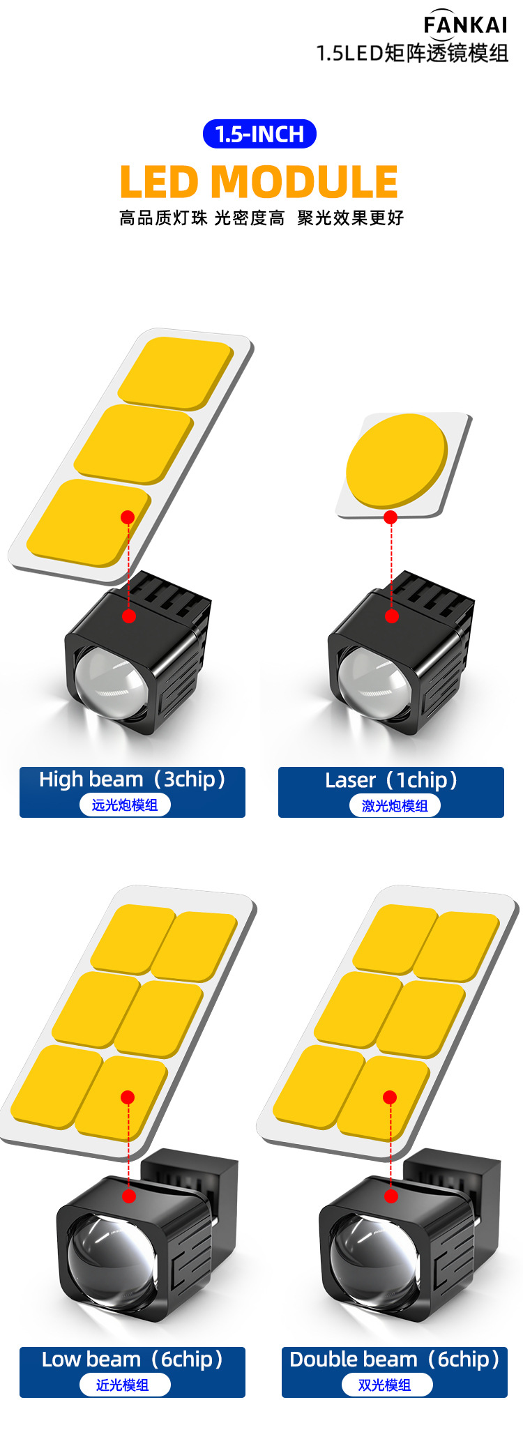1.5 Pulgada LED módulo de matriz de doble luz del faro del automóvil conversión general luz alta superbrillante luz baja cañón láser pequeño volumen