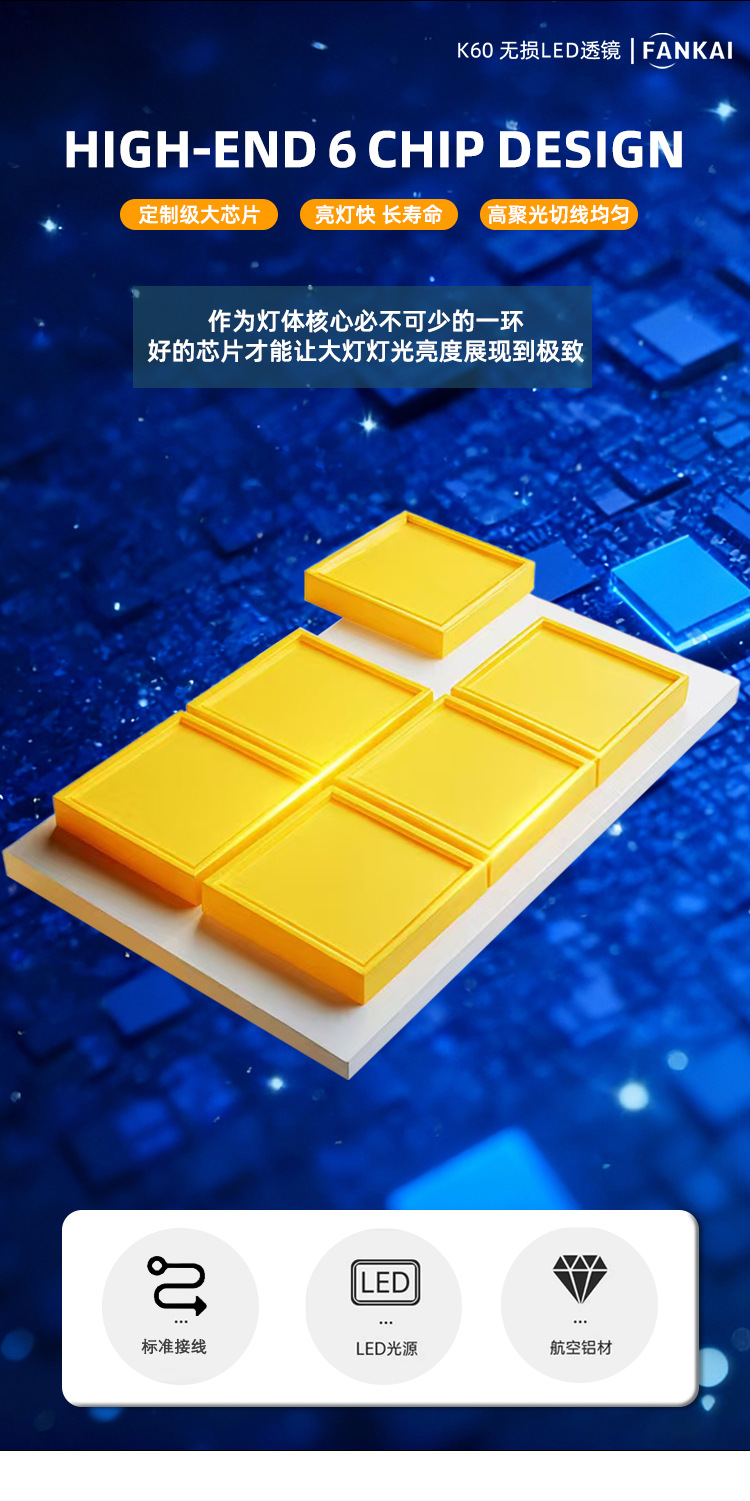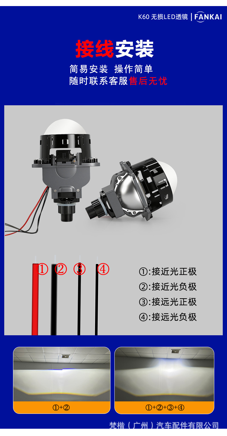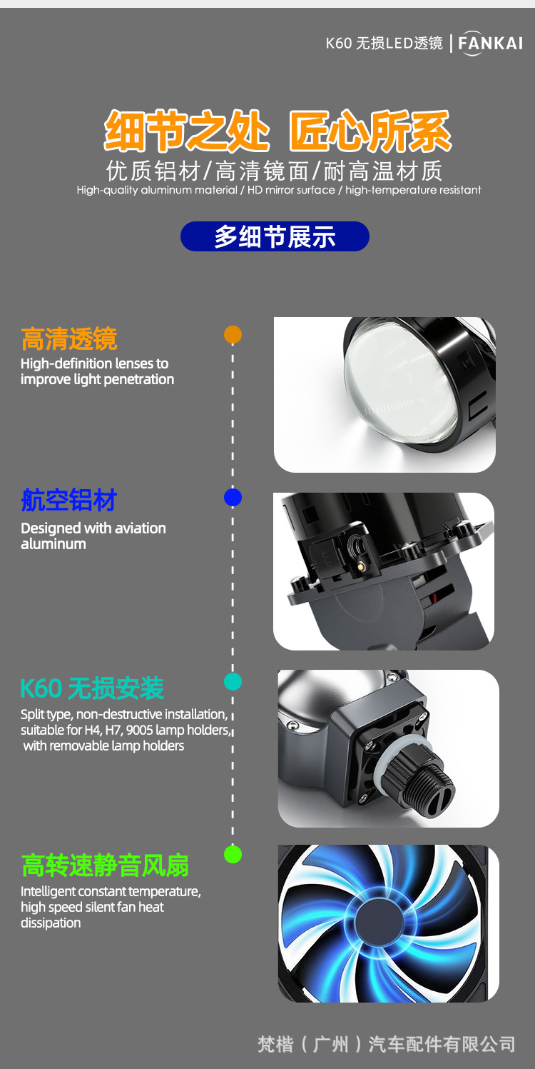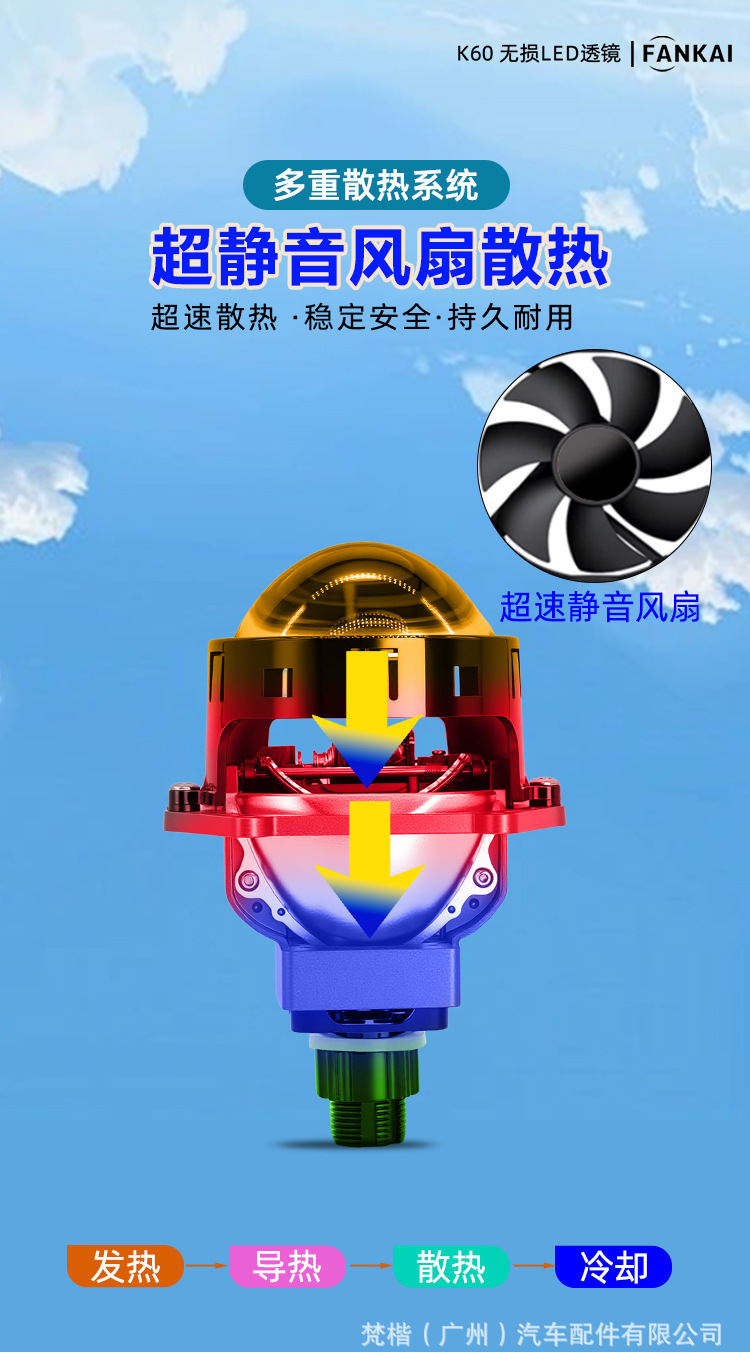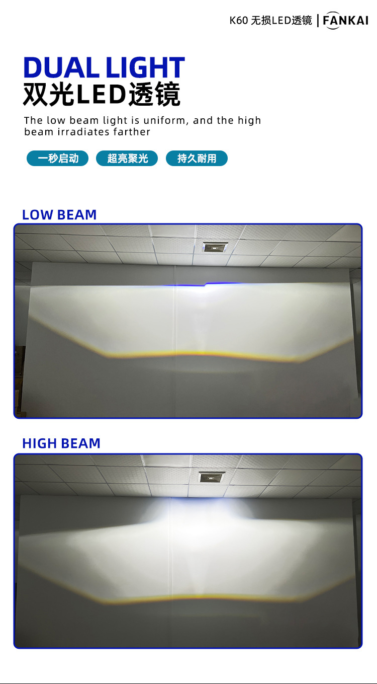 Aplicable a K60 sin pérdida LED lente de luz dual 3.0 pulgadas faro de automóvil 60W de alta potencia H4H7